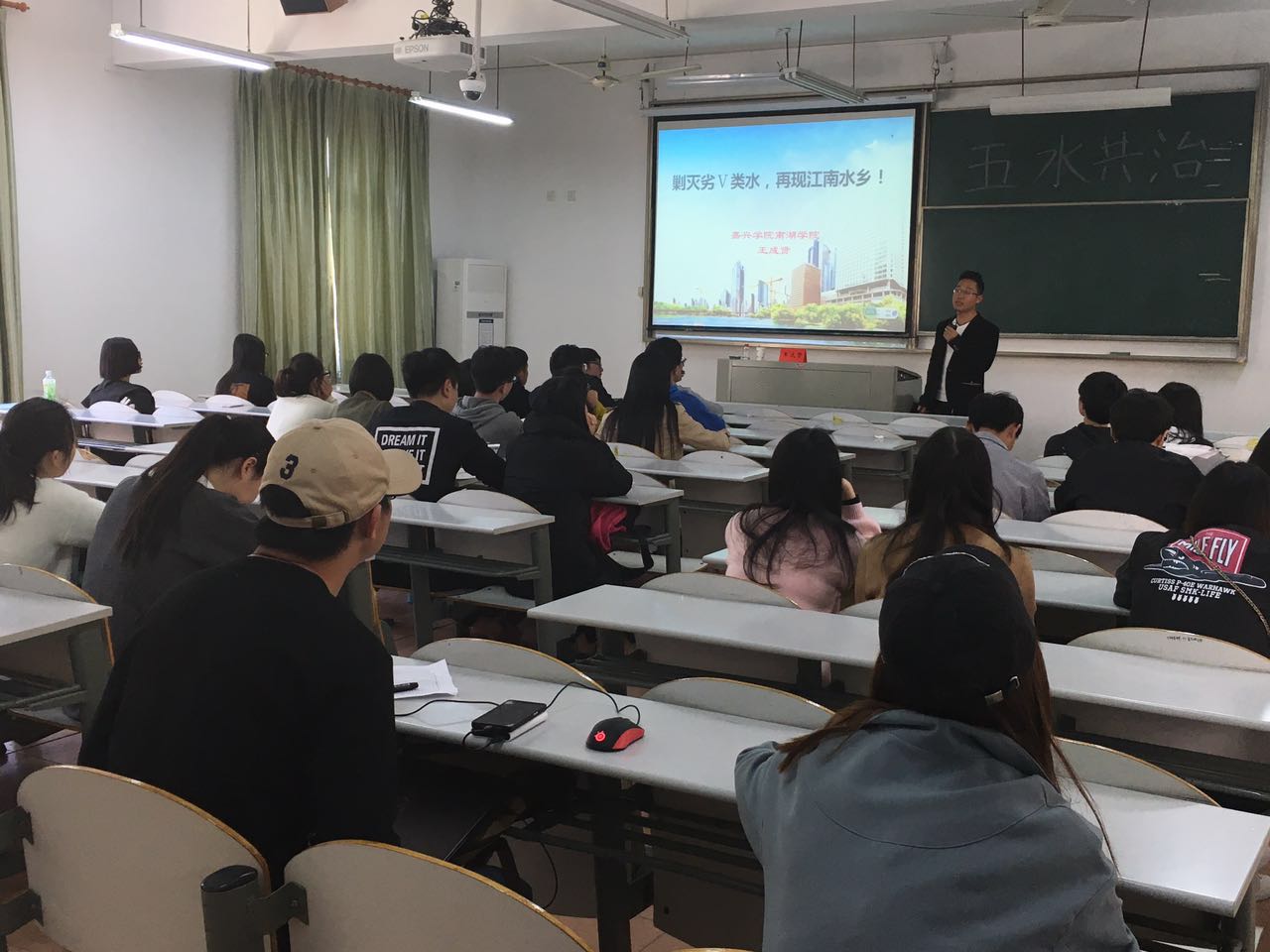 与文法学院共同举办的《剿灭劣五类水,再现江南水乡》专题讲座在越秀校区教一131成功举行。本次讲座邀请了南湖学院化纺系环境工程专业教师王成贤老师授课。来自两学院近70名志愿者聆听了王老师的精彩讲解。王老师从“治污水、防洪水、排涝水、保供水、抓节水”等方面,分析了“五水共治”的紧迫性、必要性和惠民性,并通过一个个生动的案例,让大家对“五水共治”科普知识有了一个更深的了解。通过讲座向大学生普及治水知识,树立起“从自身做起,从点滴做起,珍惜和保护家园水环境”的普遍共识。