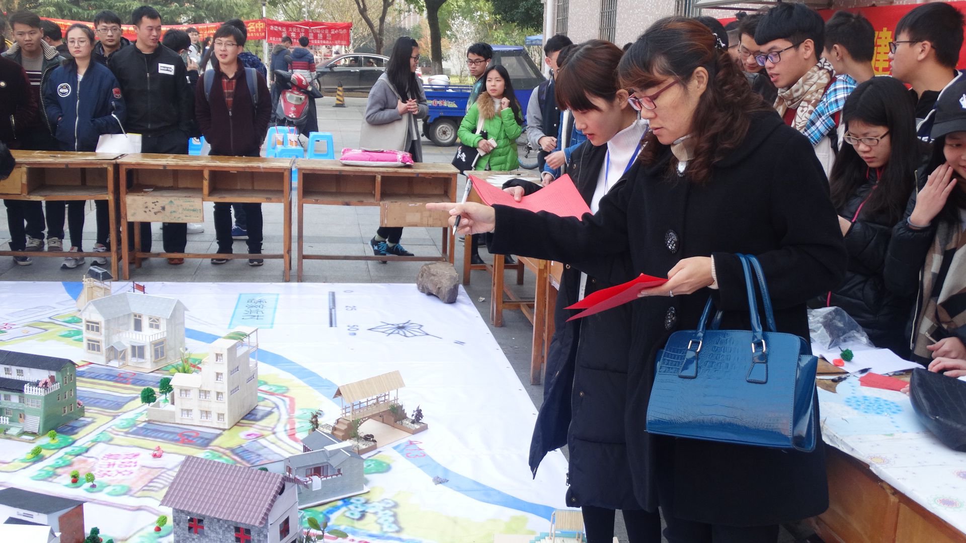 2016年12月1日中午11:00在越秀校区美食城广场举行了“3D美丽乡村模型活动”。本次活动的主题是:美丽村庄“潘家浜”的新农村规划。共有36个团队进入了决赛,现场气氛十分火热,每个参赛选手都积极地向老师和同学们讲述自己的作品。