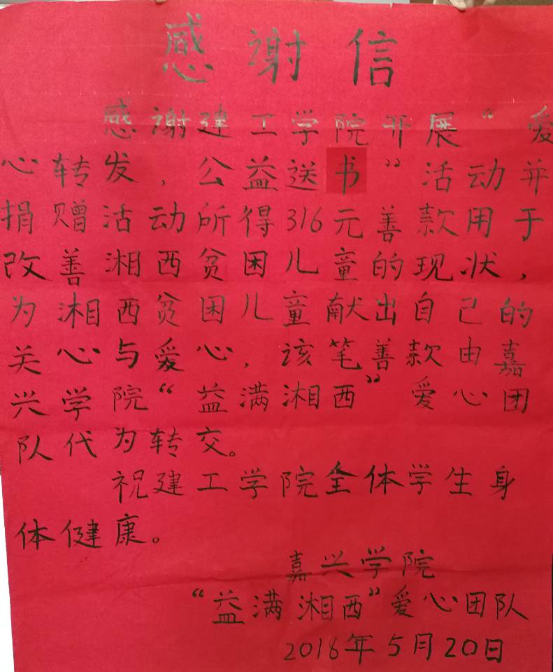 自今年3月始,草莓视频 学生会多次组织志愿者在建工学院老师的大力支持下,进行了“YOUR公益”一元爱心义卖活动,共计集得九百余元款项,全数献给益满湘西团队!