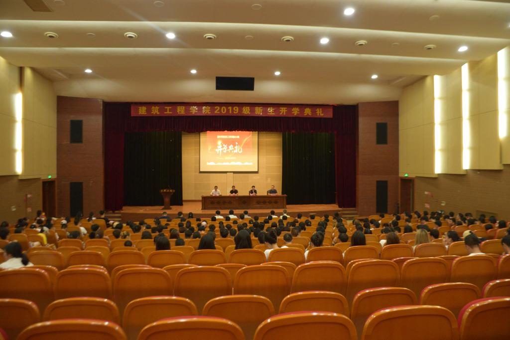 2019级新生开学典礼正式开始。首先由新生班主任代表土木工程国际191班班主任廖绍凯老师致辞,他表达了广大教师对大家的殷切期望和关怀之情;接着是老生代表、院学生会主席熊雨婷同学发言,她表达了学长学姐对学弟学妹们的亲切关怀;然后由新生代表土木工程国际191班宋侣涵同学发言,他表达了自己要在大学四年里发奋努力、立志成才的坚定决心和强烈愿望;最后院长马嵘老师向同学们分享了对大学的认识,也对同学们即将开始的大学生活提出了希望和要求,要求同学们践行“方正为人、勤慎治学”的校训,以“求是求真求正”的校风要求自己,书写人生精彩篇章。