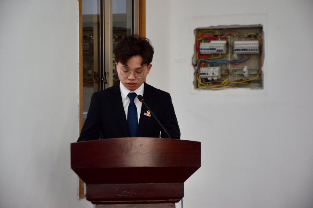 他首先向大会的胜利召开表示祝贺,充分肯定了学生会在引领学生思想,维护学生权益,丰富校园文化生活,服务和谐校园建设,弘扬优秀传统文化等方面发挥的积极作用,并代表学院团委对全院各级学生组织、广大学生干部和青年学生提出以下三点要求:一是要贯彻团学改革新精神。按照扁平化方式改革职能部门设置,减少管理层次,杜绝“行政化倾向”。要坚持立德树人,紧扣时代主题,更好地团结和凝聚广大同学听党话、跟党走,为推进“四个全面”战略布局、实现中华民族伟大复兴的中国梦贡献青春力量。二是要不忘主业、加强学习。学生干部,首先的身份是学生,首要的任务是学习。要正确处理好学习和工作之间的关系,不忘学习这一主业,要在学习态度、学习习惯上给广大青年学生带好头。三是要提升素质,树立榜样。广大学生干部要带头学习中国特色社会主义理论体系,带头学习十九大精神,带头学习习近平新时代中国特色社会主义思想,自觉用正确的立场、观点、方法分析问题,解决问题,提升政治素质。其次要具备一定的业务素质,提升服务意识和协调能力,维护好同学们的利益,加强和同学们的沟通和协调,做好联系学校和学生之间的桥梁纽带。