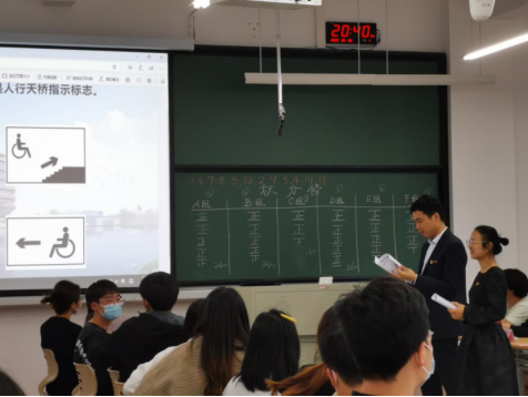 建筑学系“自然先锋杯”《无障碍设计》课程知识竞赛在兴德楼南楼226教室如期开展。嘉兴市自然资源和规划局南湖分局副局长张小军,嘉兴市自然资源和规划局风貌处处长郑戚良,建筑学系校友朱琼洁、周勤及建筑系教师参加了此次活动。此次活动为《无障碍设计》课程的一堂授课内容,旨在通过任课教师对课程精心设计,使广大学生在学习上更投入,对待课程更上心、对待考试更用心。