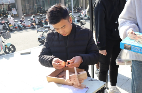 为传播中国传统榫卯结构的文化,开展传统建筑文化宣传活动,2023年12月7日草莓视频 团委学生会在梁林二期食堂广场举办“走近榫卯”主题活动。