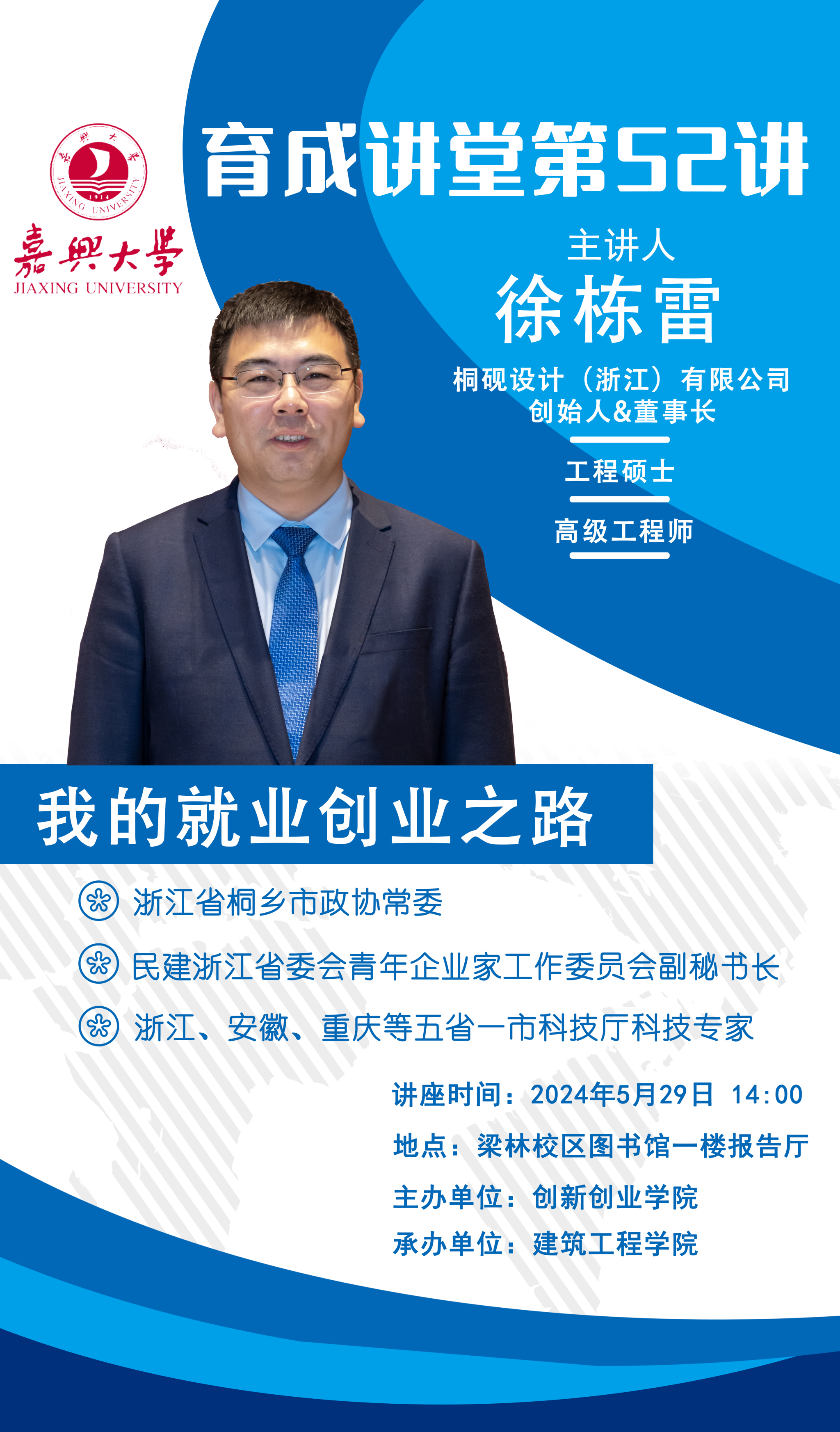 2001级校友徐栋雷应邀作育成讲座第五十二讲,讲座主题为《我的就业创业之路》。本次育成讲座由创新创业学院主办,草莓视频