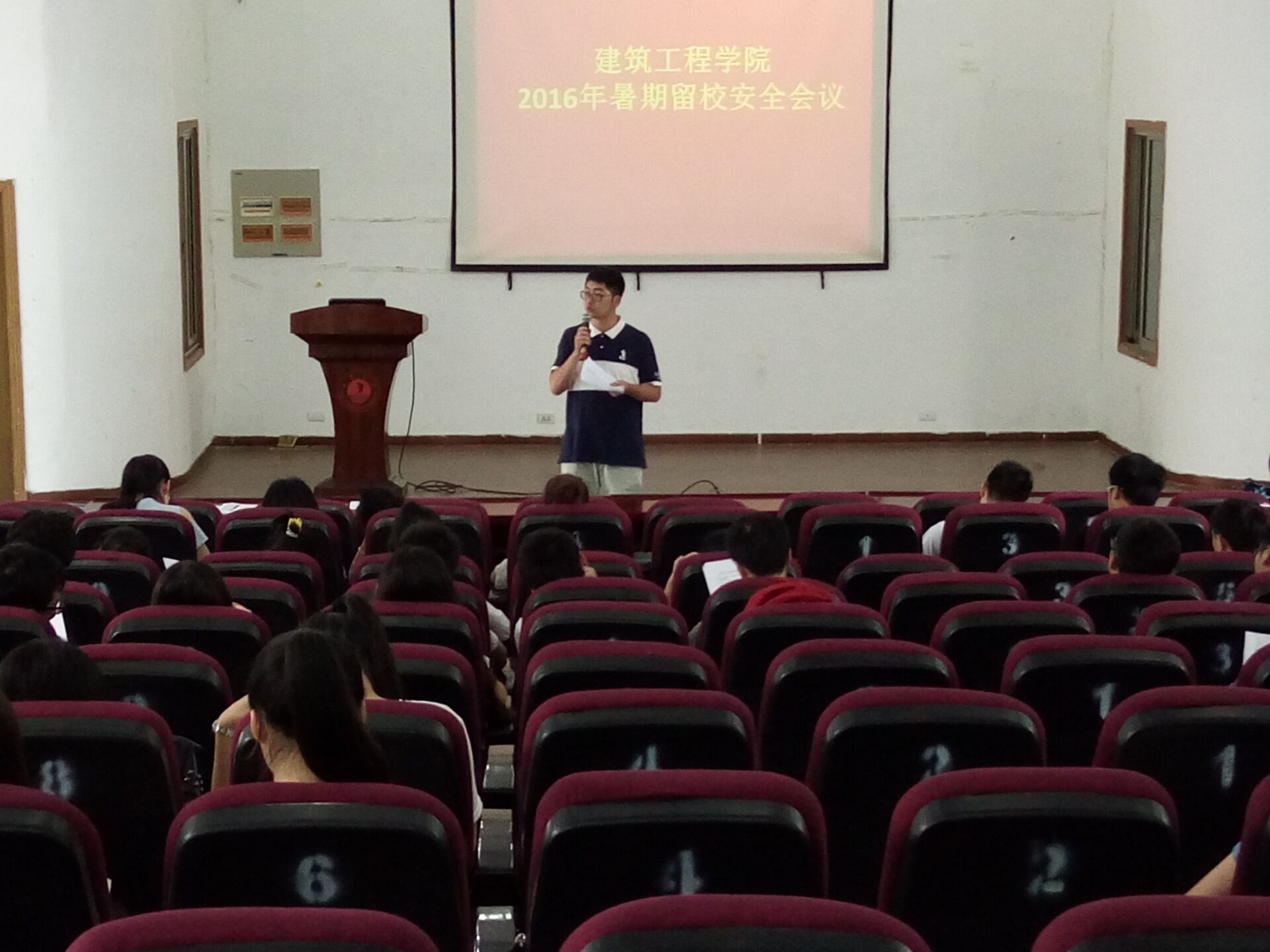 7月13日中午1:30,建工学院在越秀第四报告厅召开暑期留校学生安全会议,发放了人手一份的《安全须知》,会议由学工办程老师主持。