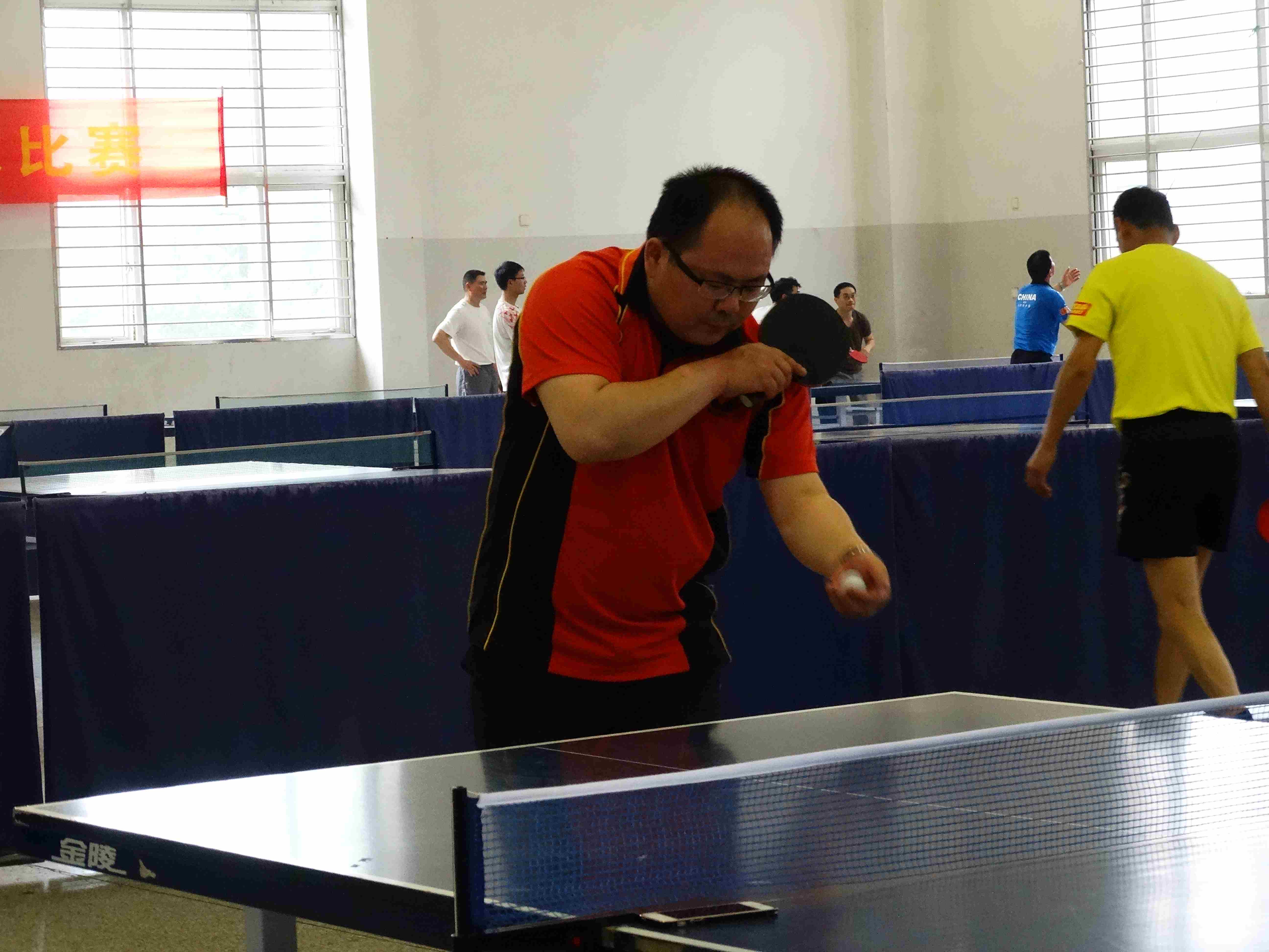 下午比赛未正式开始之前,参赛选手们便整装待发,跃跃欲试。无论是否熟识,只要一副球拍一个球就可以来一场酣畅淋漓的比赛;无论年纪大小,身份高低,拿起球就是朋友。在进行了短暂的热身活动之后,比赛正式的开始了。通过分组方式,选手们同时开始进行比赛。饱满的热情,高昂的斗志,这样的一场友谊赛打出了水平,打出了友谊。赛势高潮不断,选手比分不分伯仲。一个个完美的抽杀,漂亮的拦截,让人感叹高手在人间。通过一轮轮的比赛,活动进入了尾声,选手们都大汗淋漓但却精神抖擞。卸去一身的疲惫,这个周末注定将是一个舒适难得周末。
