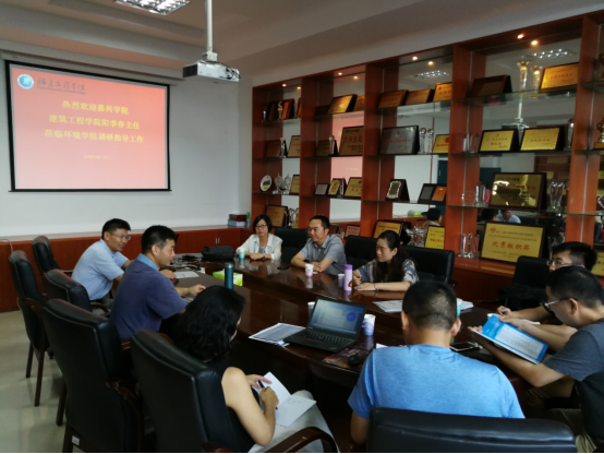 627福建工程学院,受到福建工程学院生态与环境工程学院书记谢鸿飞老师、建环专业负责人范亚明老师的热情接待,谢鸿飞书记介绍福建工程学院和生态环境与城市建设学院的情况,范亚明老师就福建工程学院建环专业就专业认证、专业建设、教学实习管理等方面进行介绍,双方就相关问题进行深入讨论和交流,会后学院一行还参观建环专业实验室。