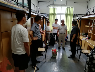 院长马嵘老师、党委书记费锦红老师、党委副书记王辉老师、学生工作办公室曹俊老师以及新生班级的班主任助理等一行人亲切走访了2018级新生宿舍,看望了2018级新生并详细了解了新生的入住情况。