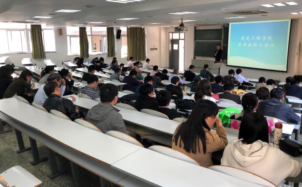 4月18日下午,建工学院召开全体教职工会议进行政治理论学习和举行“平安校园”建设目标责任书签约仪式。会议由党委书记费锦红主持。