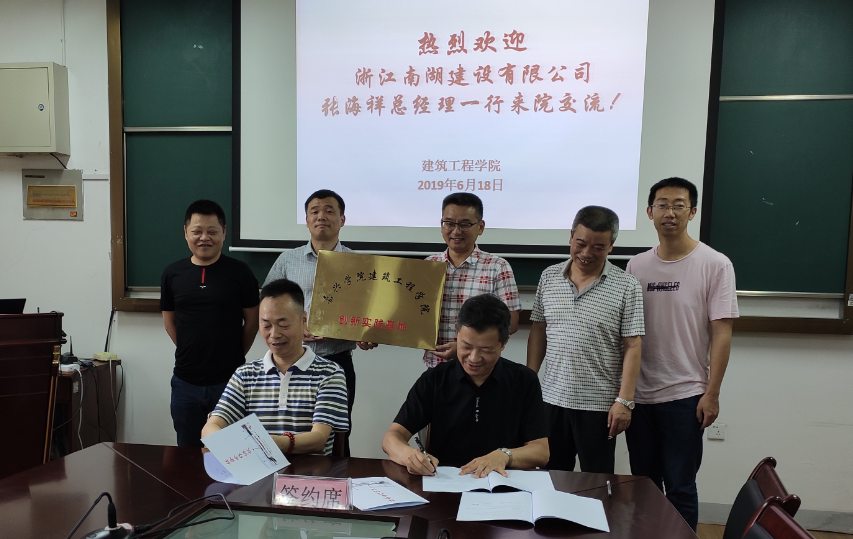 会上,马嵘院长代表建工学院与浙江南湖建设有限公司张海祥总经理现场签订了创新实践基地校企合作协议,并进行了基地的授牌。(肖伟 供稿;黄殿武 审稿)