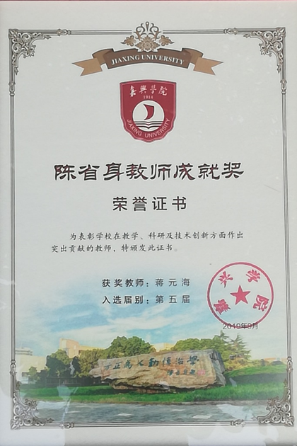 蒋元海教授获得“嘉兴学院第五届陈省身教师成就奖”,蒋元海教授也是建工学院第一位获此殊荣的教师代表。