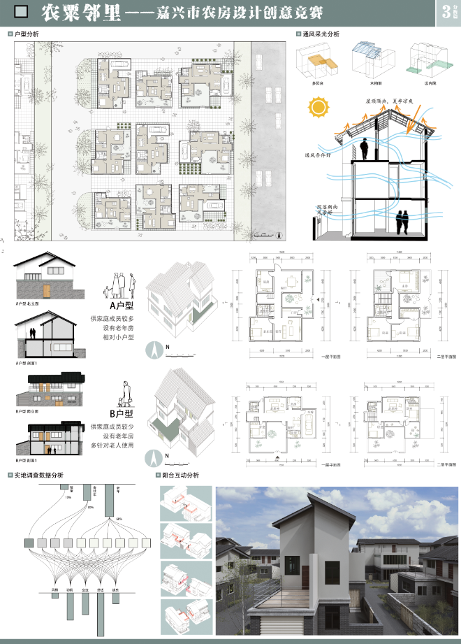 建筑学系汪平西老师指导,建筑172班的熊雨婷、徐伊静、田鑫源三位同学参与设计的《农粟邻里》项目荣获嘉兴市首届农房设计创意大赛二等奖。