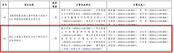 蒋元海教授课题组完成的“预应力混凝土管桩安全生产研究及行业标准制定”科技成果荣获全国建材行业科技进步二等奖。