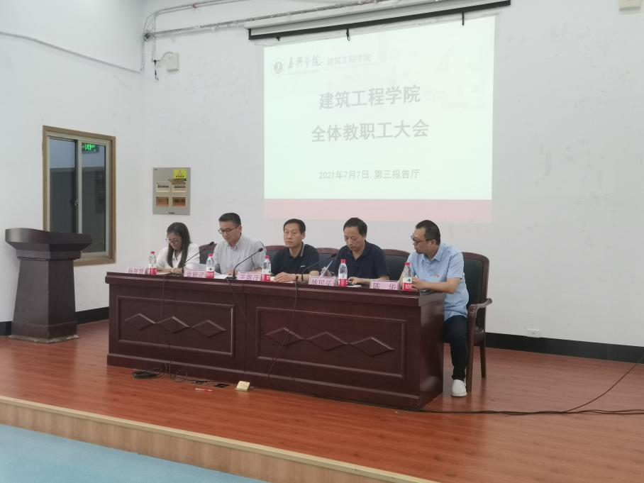2021年7月7日下午,建工学院在第三报告厅召开全体教职工大会,对期末相关工作以及暑期安全稳定工作进行部署。会议由党委书记姚民乐主持。