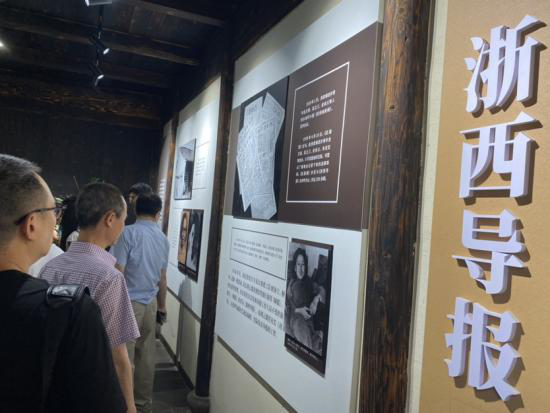 在洲泉镇,全体党员首先参观了洲泉党史陈列馆。该馆展陈共分两部分,第一部分展示了中共嘉(兴)崇(德)桐(乡)工作委员会及洲泉党组织艰苦卓绝的革命斗争历程,再现了革命志士工作生活的场景;第二部分呈现了浙西导报社在党的领导下,报社上下坚持斗争,以其无畏的战斗精神、坚定的抗日立场、丰富多彩的报道内容,推动了浙西抗日救亡运动的开展。