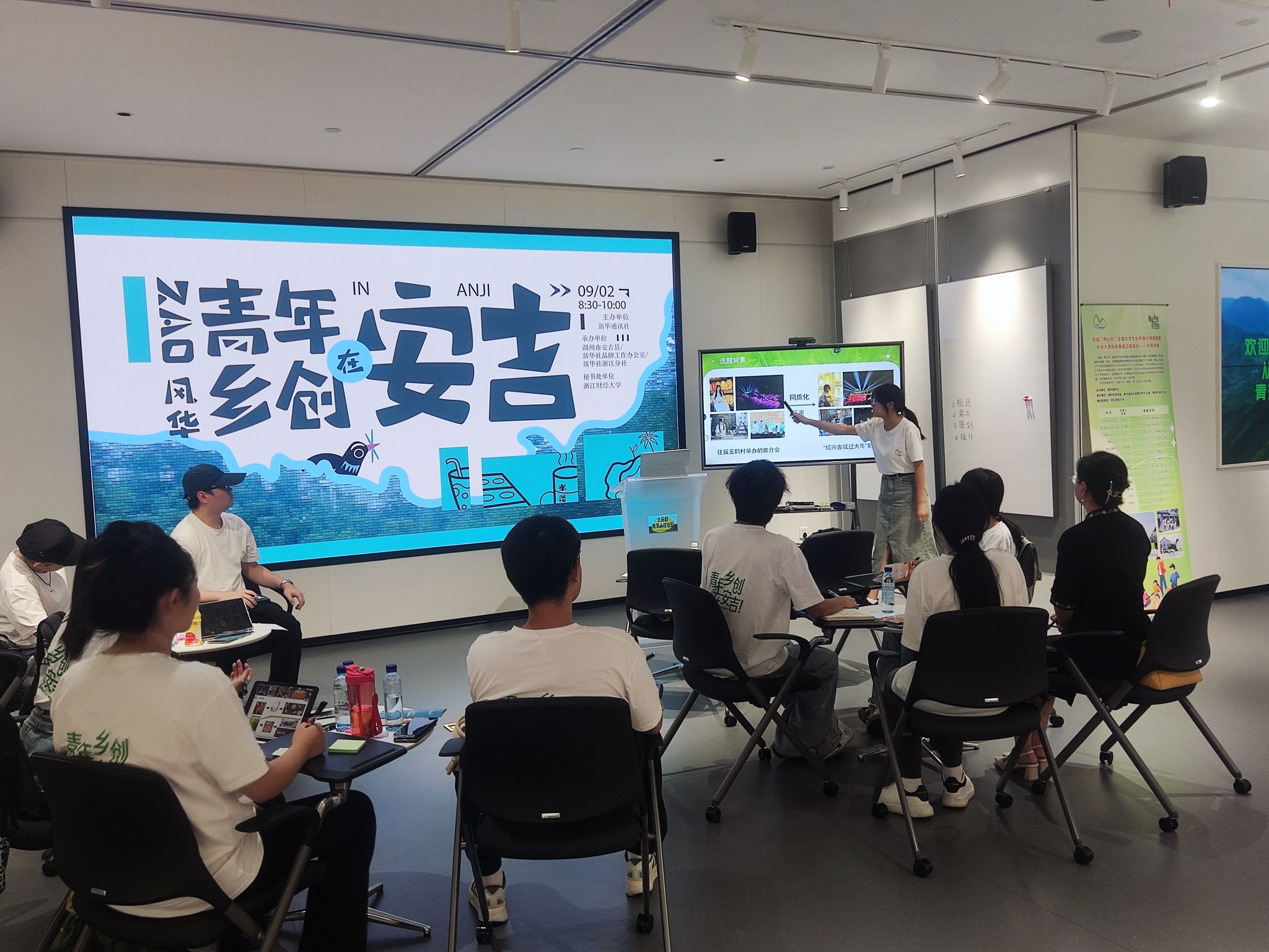 两个多月的时间里,团队在胡亚楠、王中锋两位指导老师带领下,深入调研安吉县大竹园村,积极走访非遗传承人、参观余村“两山”理论起源地等,希望用自己的专业知识为大竹园村农旅融合产业发展注入新的活力。