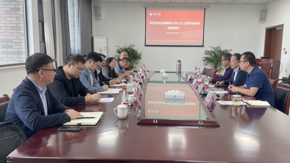 10月28日上午,安徽建筑大学教务处处长马巍、土木工程学院党委书记王媛、土木工程学院副院长施国栋等一行5人来草莓视频