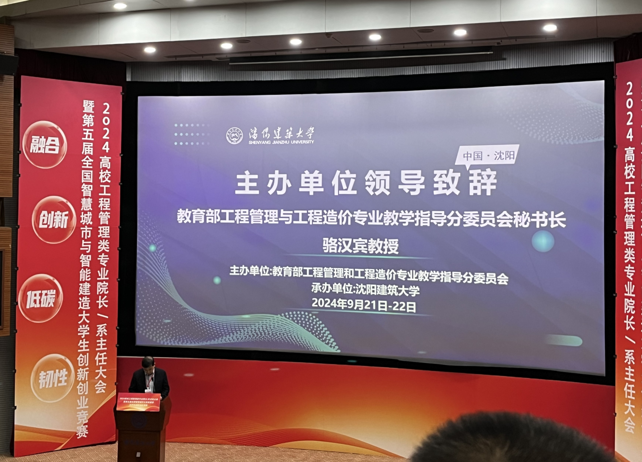 2024年9月21日至22日,工程管理系主任宋宇名、副主任何丹丹及庄天文、陈艾老师参加了在沈阳建筑大学举办的全国高校工程管理类专业院长系主任大会本次会议由教育部工程管理和工程造价专业教学指导分委员会主办,沈阳建筑大学承办,围绕“融合、创新、低碳、韧性”的议题展开,旨在提升工程管理类专业教学水平与人才培养质量,推动教学创新,激发产教深度融合。教育部工程管理和工程造价专业教学指导分委员会秘书长骆汉斌教授致辞,住建部高等教育工程管理专业评估委员会副主任、重庆大学副校长刘贵文教授做了“产业形势与工程管理类专业发展方向的思考”的报告,来自同济大学、上海财经大学、大连理工大学、武汉理工大学等高校的教学指导委员会委员也分别做了报告。