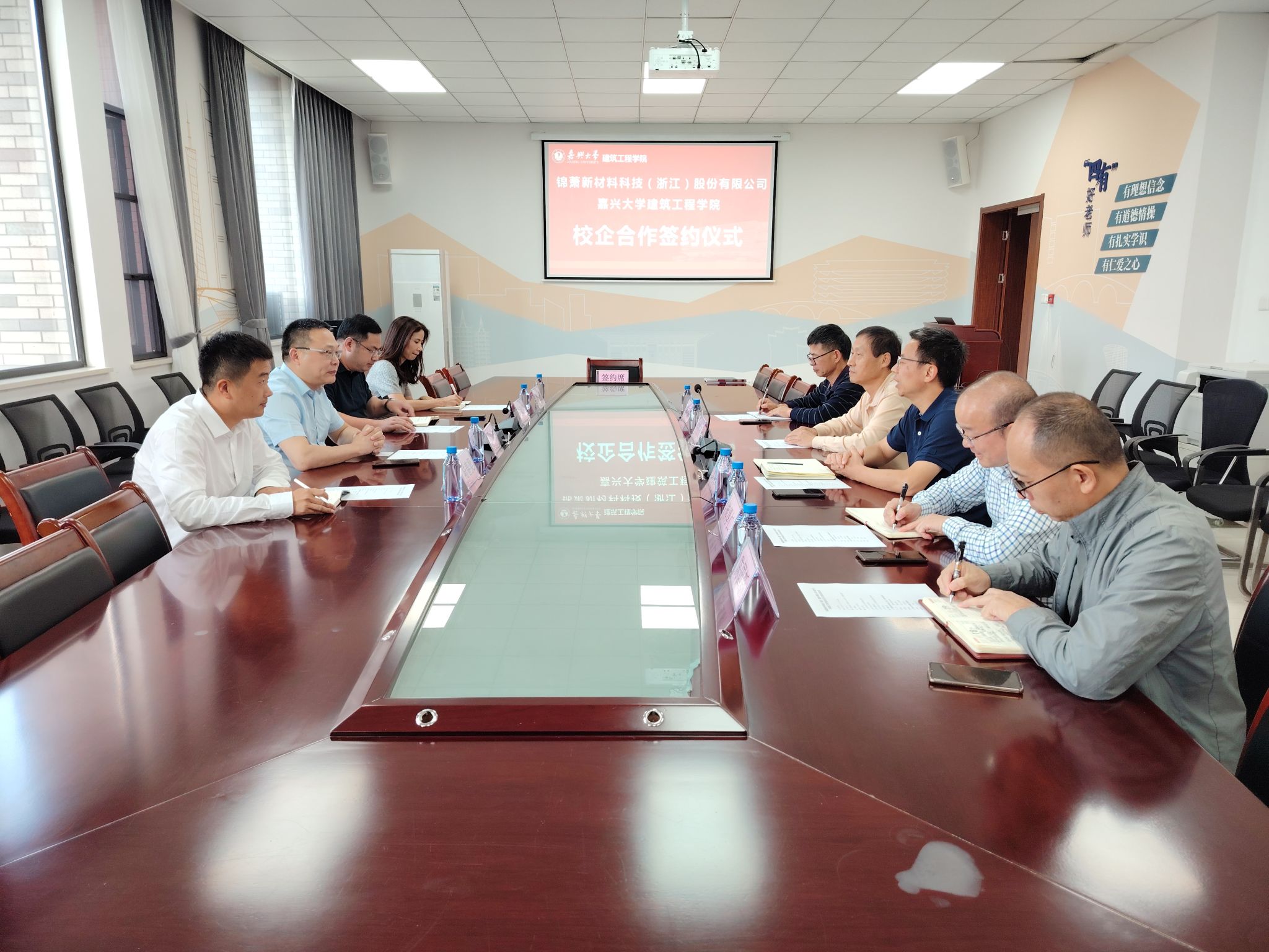 与锦萧新材料科技(浙江)股份有限公司(以下简称锦萧科技)在兴德楼北楼512会议室举行了校企合作协议、专业学位研究生专业实践基地及教育发展基金捐赠协议签约仪式。学院院长王恩茂、党委书记童勇军、副院长熊厚仁,锦萧科技董事长李军一行出席仪式。仪式由学院党委书记童勇军主持。