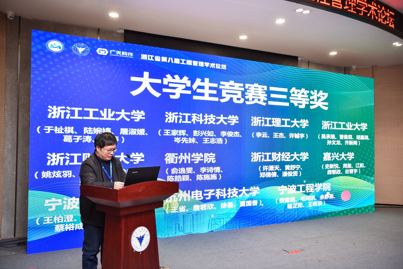 与会期间,王恩茂院长工程管理专业各教师就科研学术、教学实践等方面与省内外众多工程管理领域专家学者进行深入交流,为进一步提升工程管理专业建设水平获取了宝贵经验。同时,本次论坛还举行了第七届浙江省大学生智能建造与管理创新竞赛颁奖典礼,工程管理系主任宋宇名老师带领的团队获得了三等奖的好成绩。