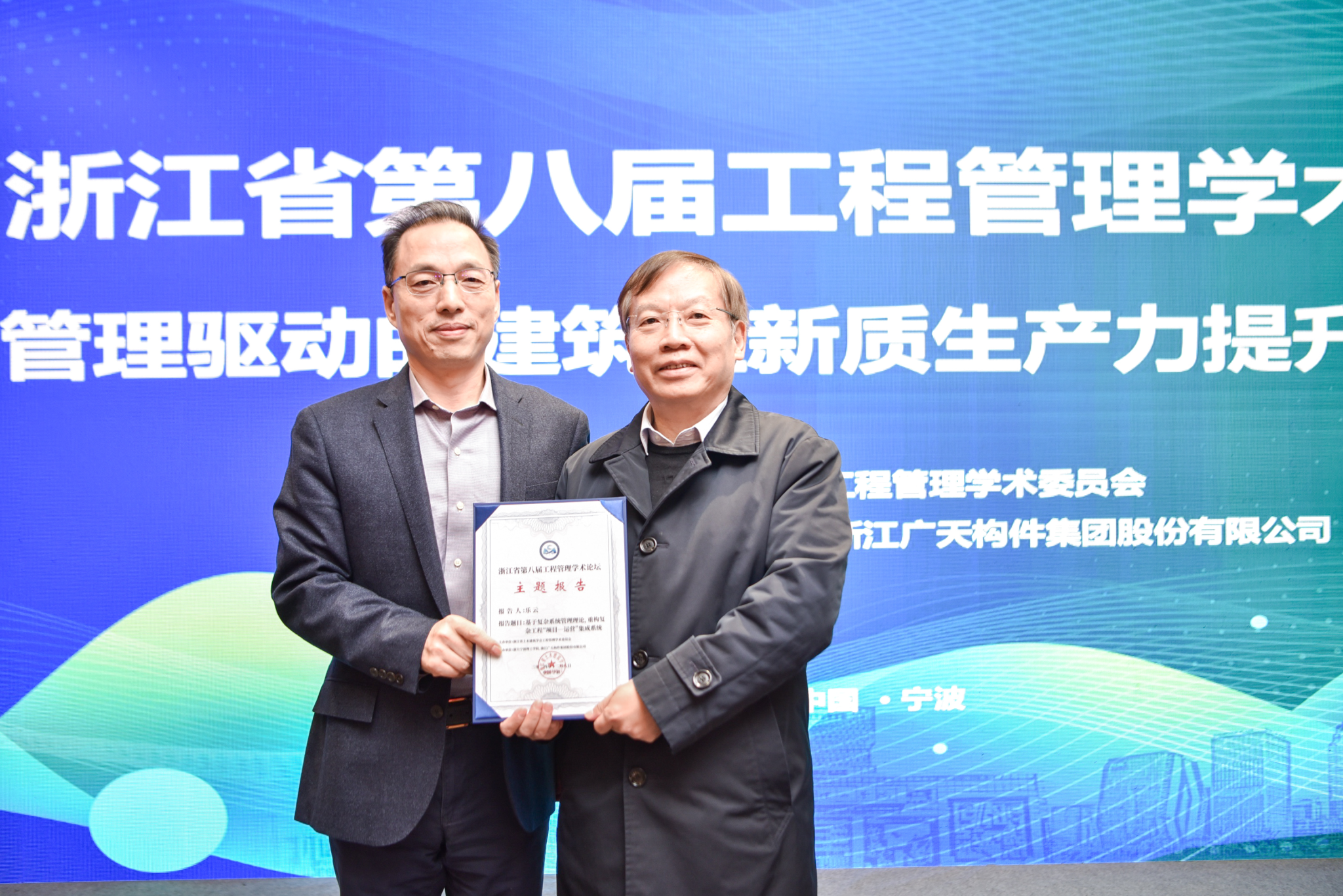 本次会议由浙江省土木建筑学会工程管理学术委员会主办,浙大宁波理工学院、浙江广天构件集团股份有限公司承办。百余位省内外工程管理领域专家学者及嘉宾齐聚一堂,共同探讨工程管理的创新发展,对提升建筑业新质生产力和实现转型升级方面的相关学术前沿、研究成果和教学心得等展开讨论。