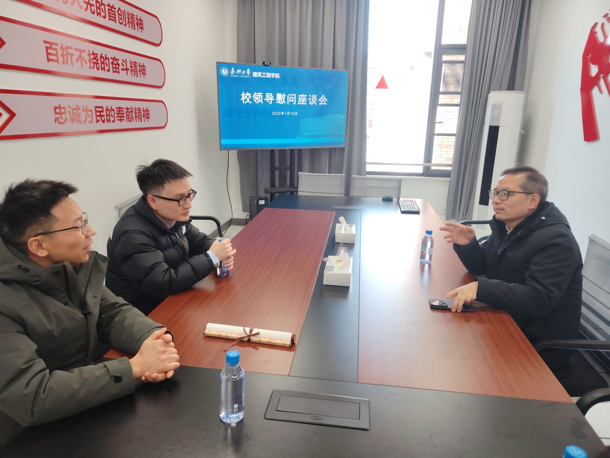 座谈会上,王梓骁博士向周校长详细介绍了自己的基本情况,包括在英国的学习经历、研究成果以及回国后的工作进展。王博士以其深厚的学术功底和前沿的研究视野,分享了自己在建筑工程领域的最新研究成果和未来研究方向。