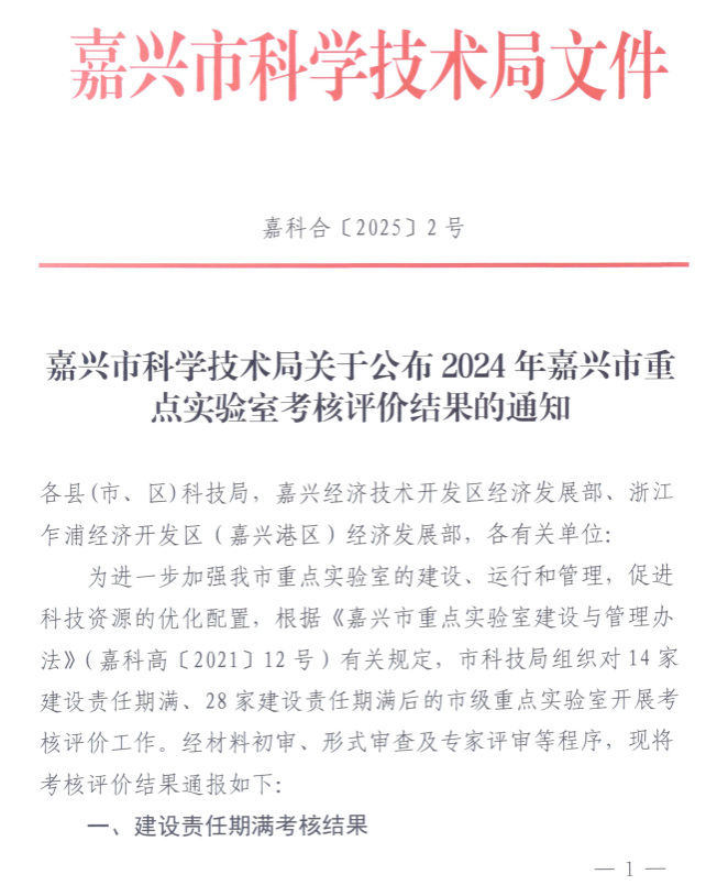 近日,嘉兴市科学技术局公布了2024年嘉兴市重点实验室考核评价结果,依托草莓视频