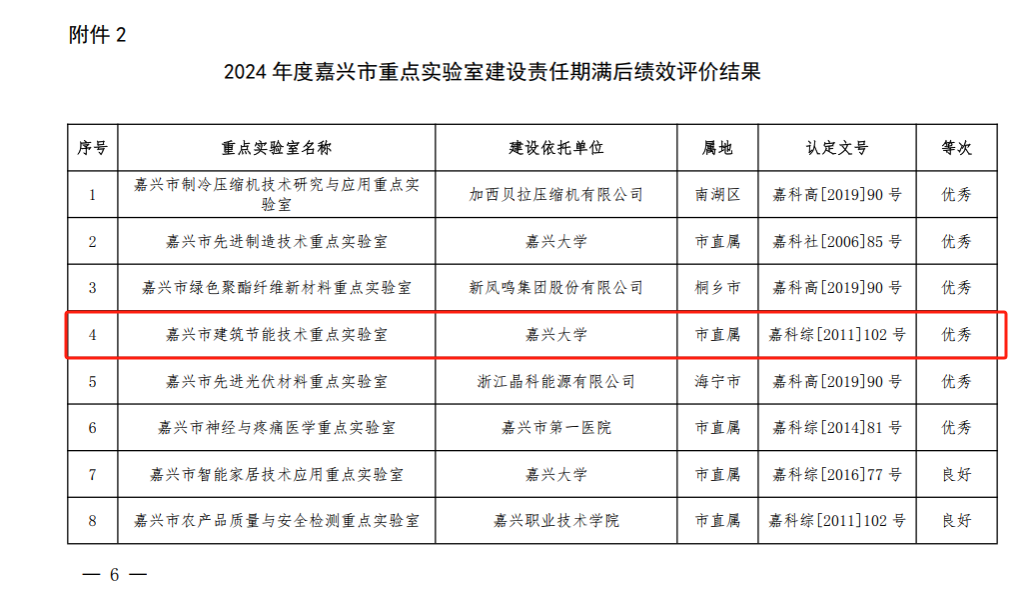 建设的嘉兴市建筑节能技术重点实验室荣获建设责任期满后绩效评价结果为“优秀”。