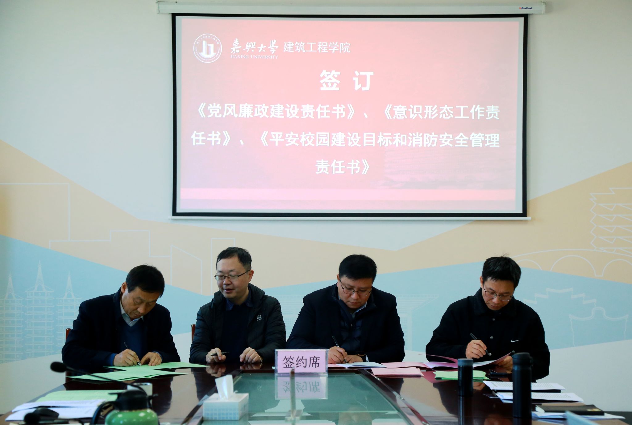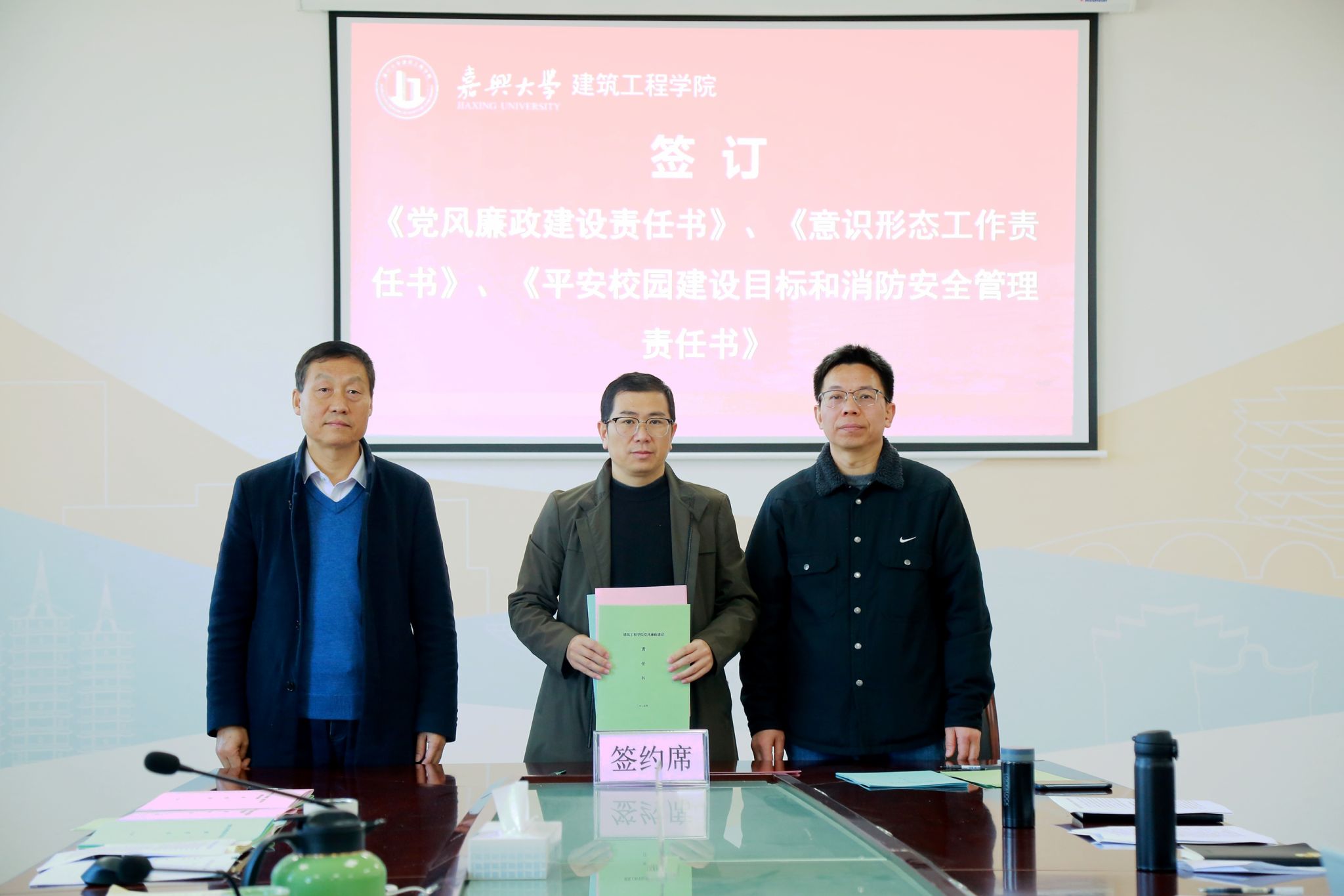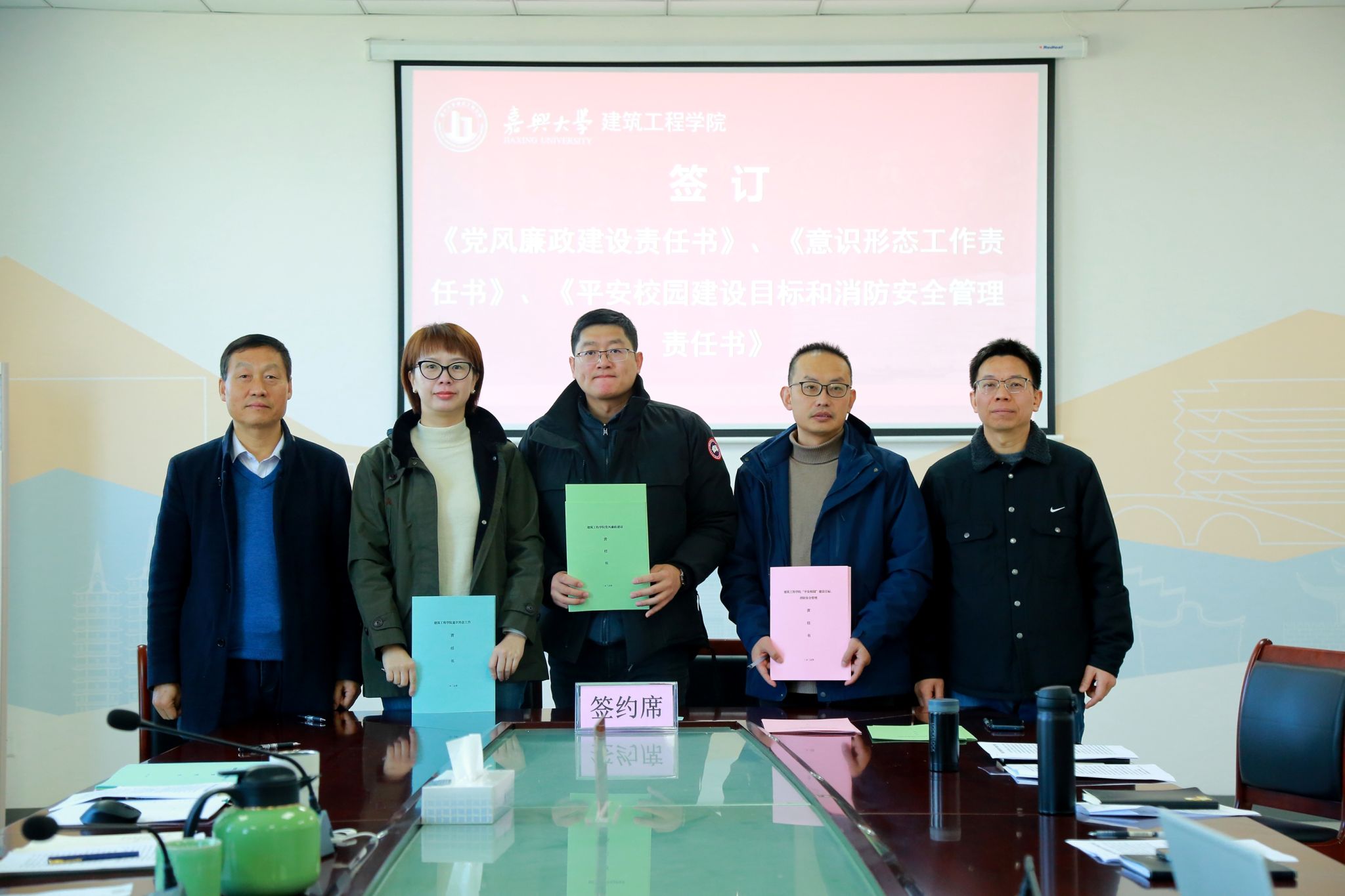 会议还传达学习了学校2025年全面从严治党暨安全工作会议精神,对学院开展全面从严治党和安全稳定工作进行了部署。会上,学院与内设机构负责人、各党支部书记签订了《党风廉政建设责任书》、《意识形态工作责任书》、《平安校园建设目标和消防安全管理责任书》。通过责任书明确职责、压实责任,确保党风廉政建设、意识形态工作和校园安全管理等各项要求落到实处。