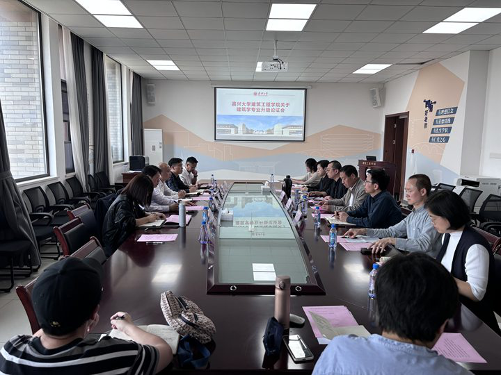 关于建筑学专业迭代升级召开论证会。论证会特邀请了嘉兴市建筑业管理服务中心副主任陈丽峰、宏正工程设计集团股份有限公司集团副总经理徐奇立、长三角城乡建设设计集团副总经理陈志平、浙江恒欣设计集团股份有限公司集团副总经理王德海、浙江鼎美智装股份有限公司副总经理王晓光、王店集成装饰(顶墙)协会秘书长朱伟超等6名行业管理、设计和企业相关领域的专家代表。会议由党委书记童勇军主持。