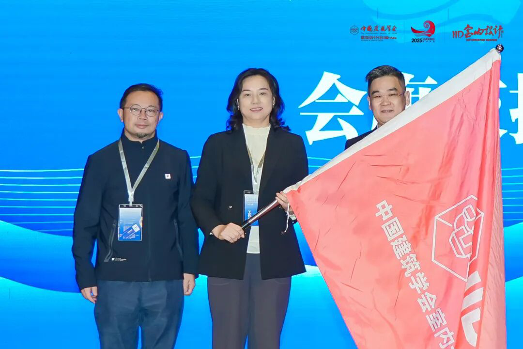 在年会会旗交接仪式上,第三十四届(嘉兴)年会主办方代表、嘉兴市秀洲区王店集成装饰(顶墙)协会秘书长祖旭峰与当地区镇领导共同登台,将年会会旗移交给2026年第三十五届(武汉)年会举办地主办方代表、中国建筑学会室内设计分会理事、华中科技大学设计学院环境设计系主任、副教授王祖君和湖北美术学院环境艺术设计学院院长、教授何凡手中。会旗的交接,标志着行业盛会的传承与延续,也让全场对明年武汉年会充满期待。