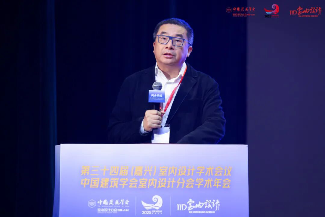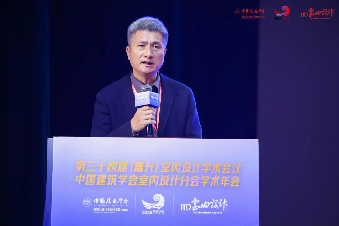 中国建筑学会秘书长、全国工程勘察设计大师李存东首先致辞。他强调,中国建筑学会始终为室内设计行业搭建顶层学术框架,提供专业资源支持,推动室内设计与建筑行业整体进步,引领行业发展。