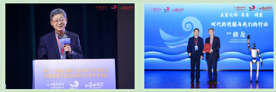 中国建筑学会理事长、国务院政府特殊津贴专家修龙,发表了《时代的进程与我们的行动》主旨演讲,围绕时代发展趋势与行业责任担当,为中国室内设计行业的未来发展提供了宏观指引。嘉兴市住房和城乡建设局党委委员、副局长朱斌,为修龙理事长颁发了演讲证书。