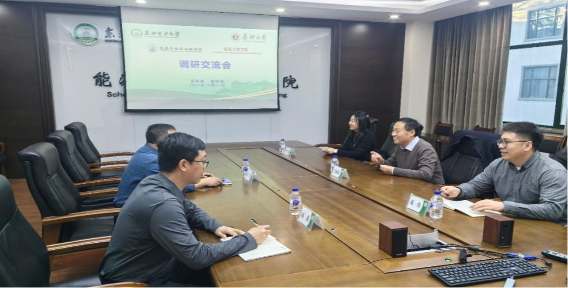 19日下午,到东北电力大学能源与动力工程学院调研交流。该院院长洪文鹏、科研副院长金旭、教学副院长高龙及青年教师李浩然热情接待了王恩茂院长一行。双方首先介绍了各自学校与学院的总体发展脉络与现状,随后围绕学科专业建设、科研创新机制、高水平人才引育等核心议题展开了全面而深入的探讨。交流特别聚焦于建筑环境与能源应用工程专业的办学特色、课程体系建设及未来发展方向,并就共同关心的“十五五”规划构想交换了意见。