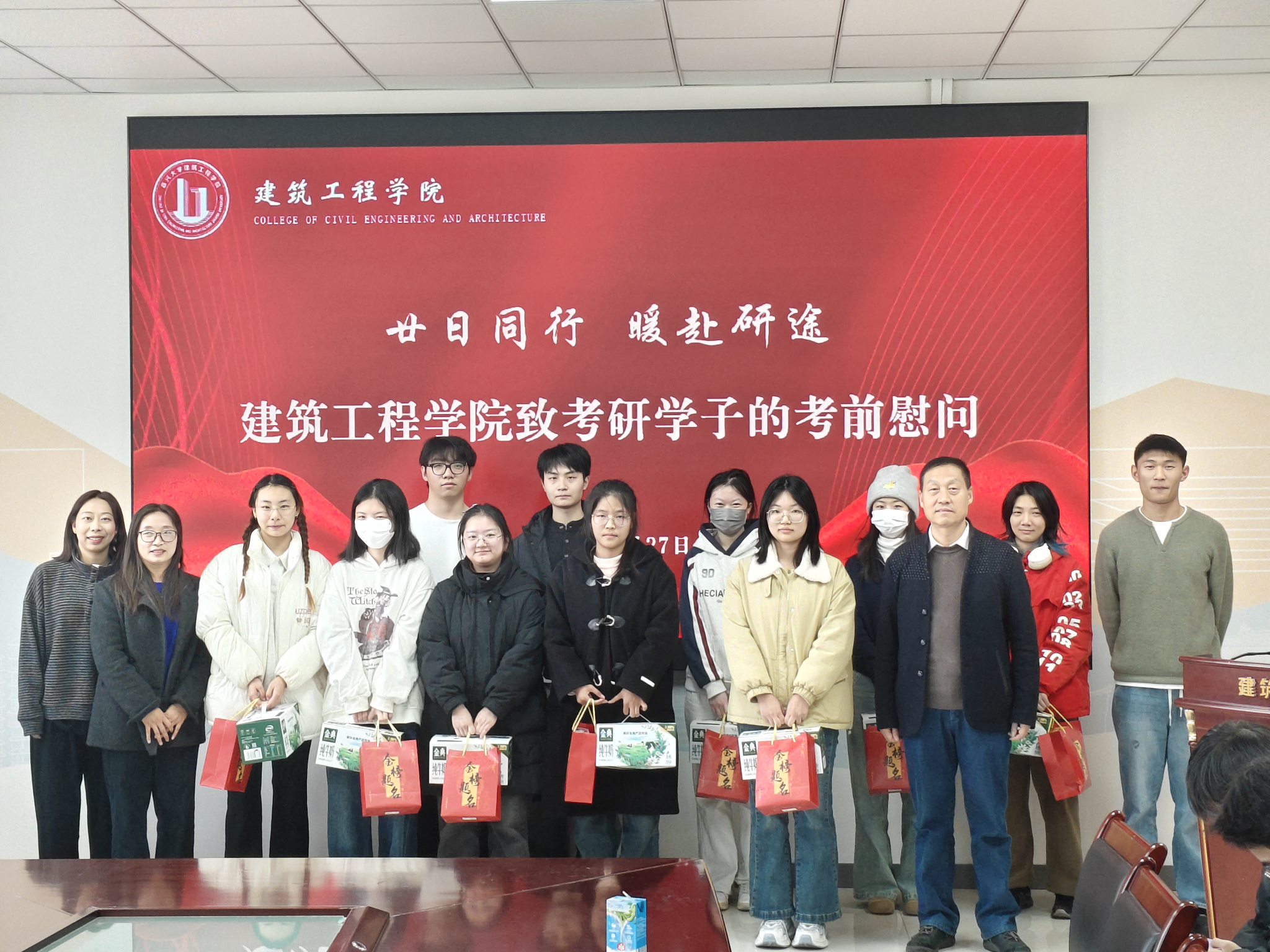 精心举办“廿日同行 暖赴研途”为主题的考研慰问活动。学院院长王恩茂、党委副书记杨智慧、学工办主任徐静、辅导员黄明叶以及2026年考研学子参加了活动。活动由学院党委副书记杨智慧主持。