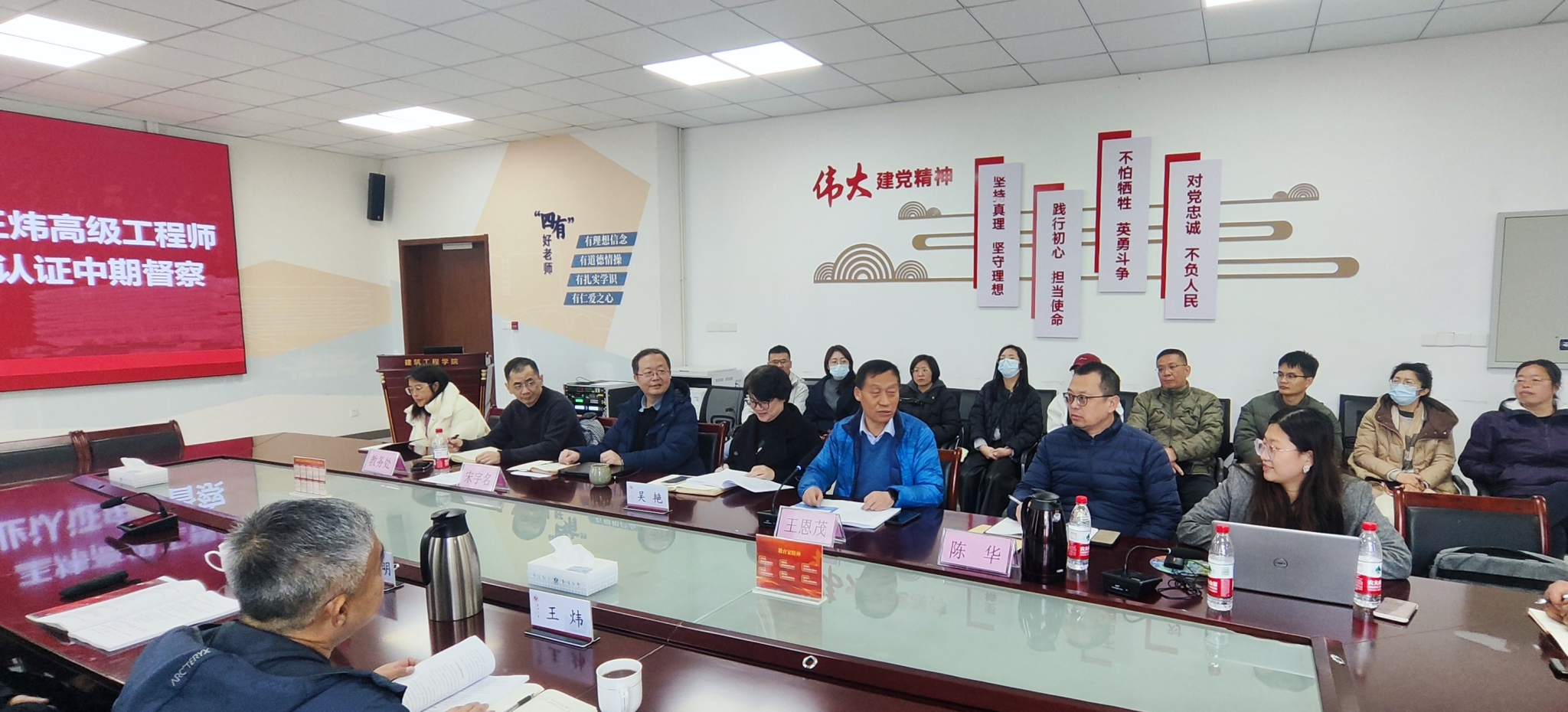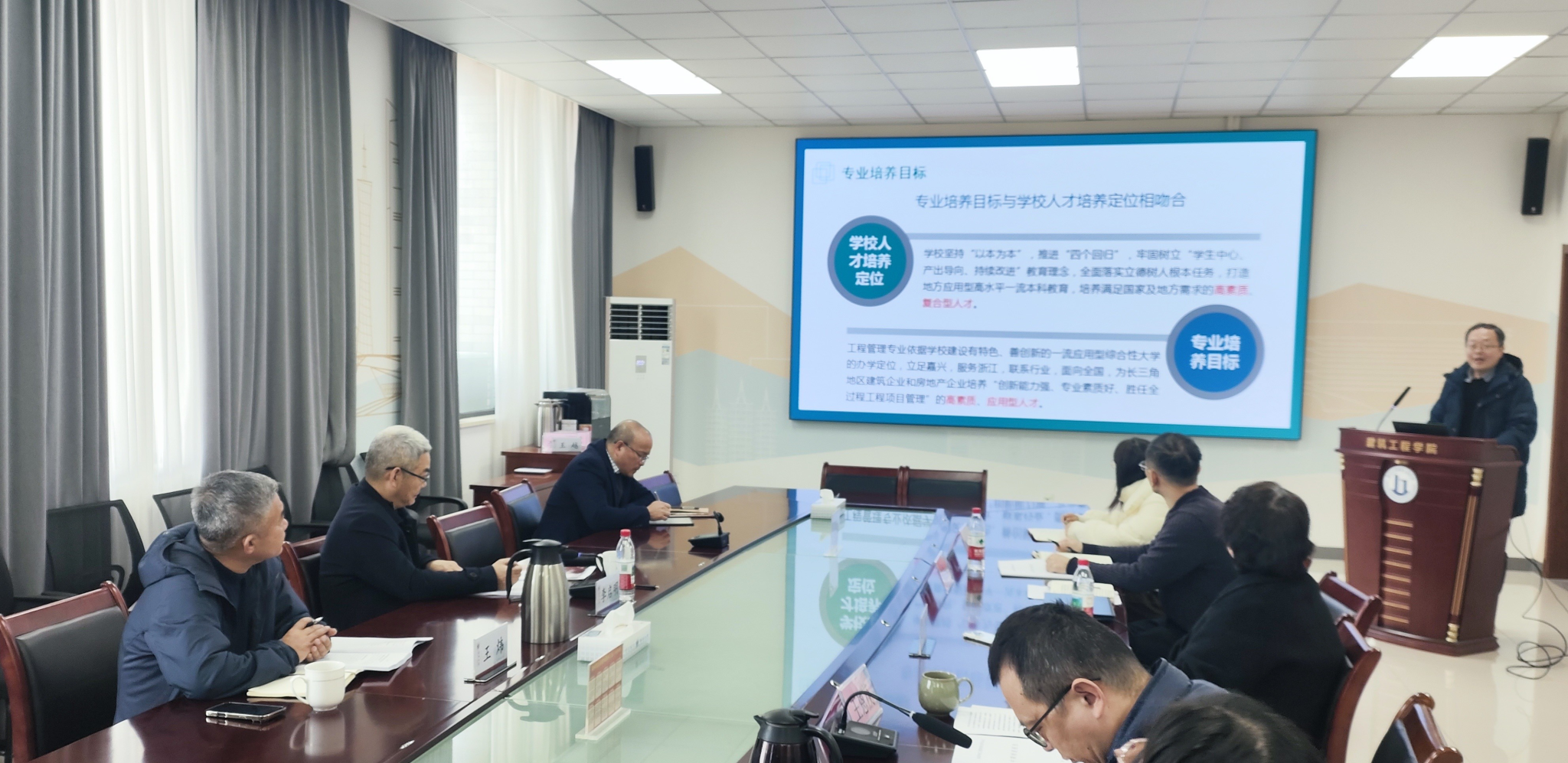 院长王恩茂、副书记杨智慧、副院长陈华、副院长熊厚仁、工程管理系主任宋宇名、系副主任姚张峰及工程管理全体专业教师参加会议。王恩茂致欢迎辞,他对专家莅临指导表示热烈欢迎,并简要介绍了学院近年来在学科建设、人才培养、专业发展、教研科研创新等方面取得的成绩。