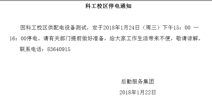 科工校区(建工学院)停电通知