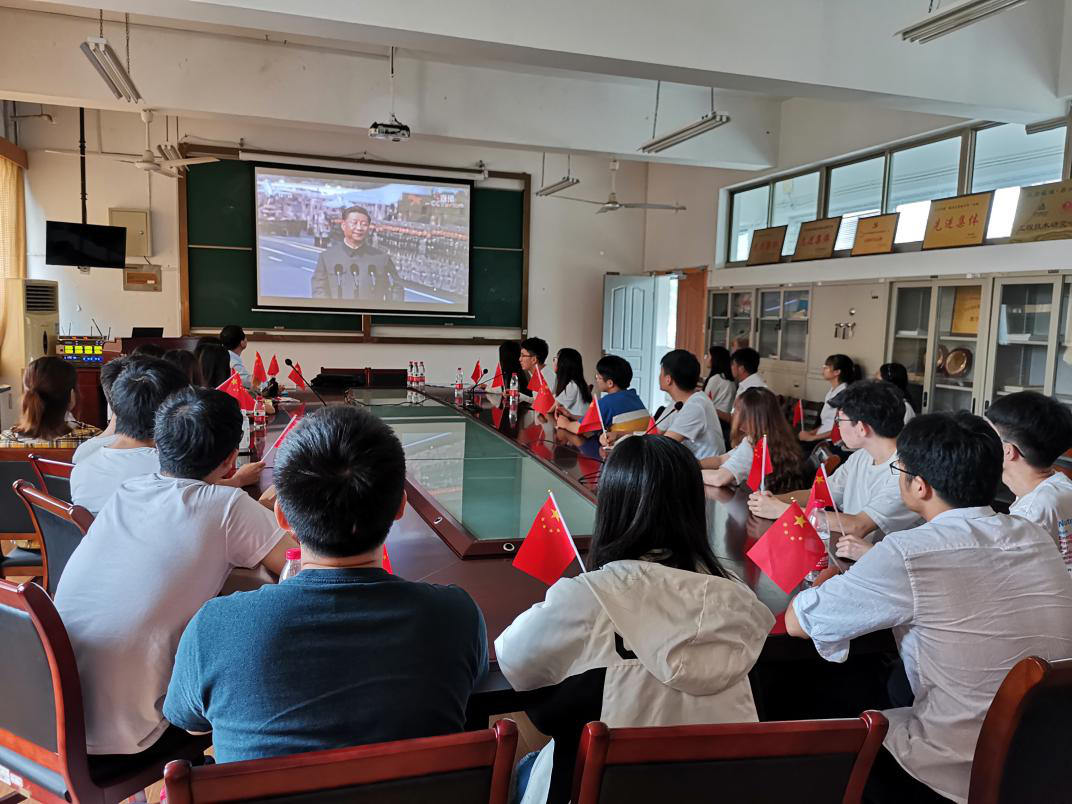 10月1日上午10:00,庆祝中华人民共和国成立70周年大会、国庆阅兵式在北京天安门广场隆重举行。草莓视频 党委组织师生在319会议室观看了此次大会的现场直播。