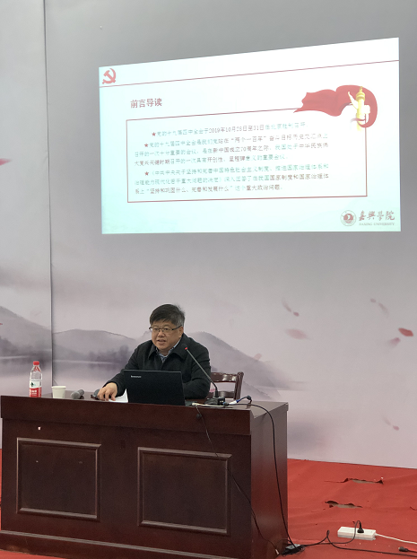 全体教职工作“学习贯彻党的十九届四中全会精神和省委十四届六次会议精神”宣讲。