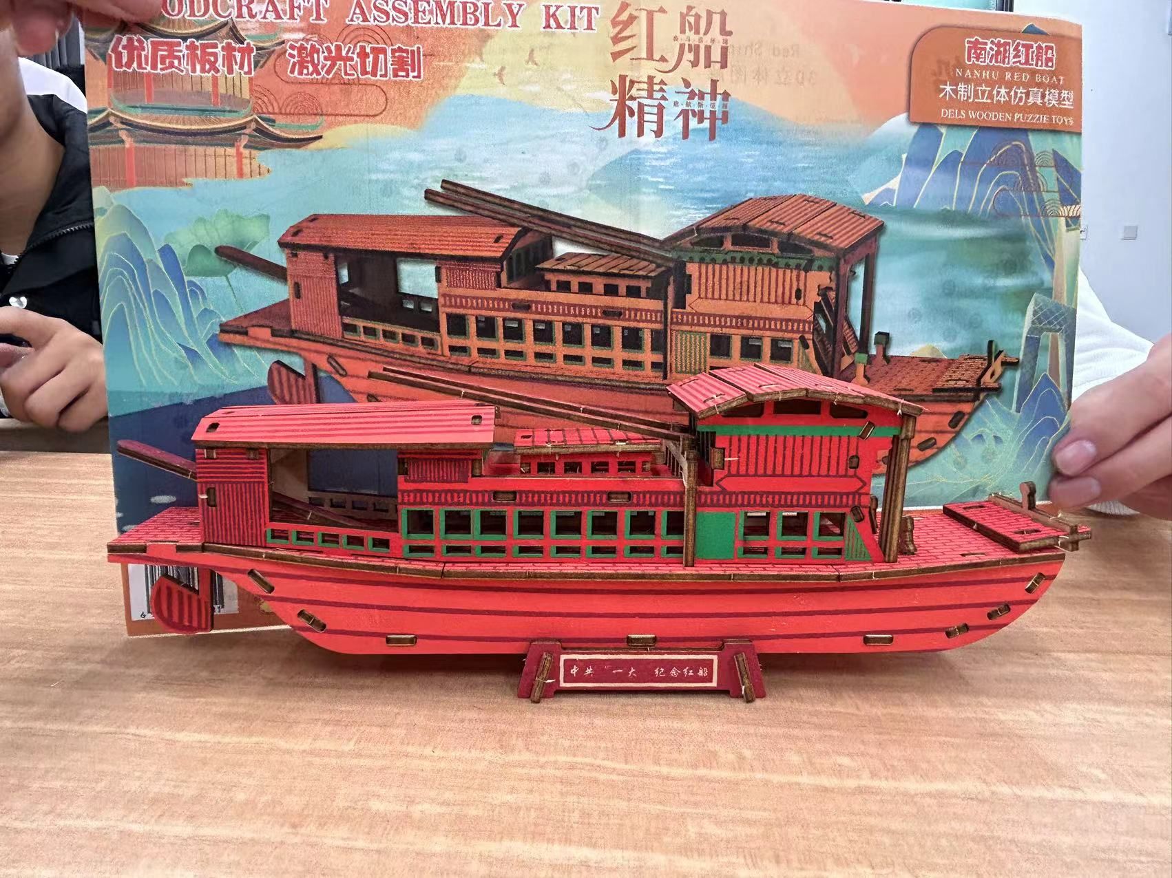 2023-2024学年第一学期业余党校学员在厚德楼151教室开展以“做红船模型,传红色精神”为主题的拼南湖红船活动,带着传承“红船精神”的信念,通过南湖红船模型制作的方式,进一步走近红船,领悟红船精神。