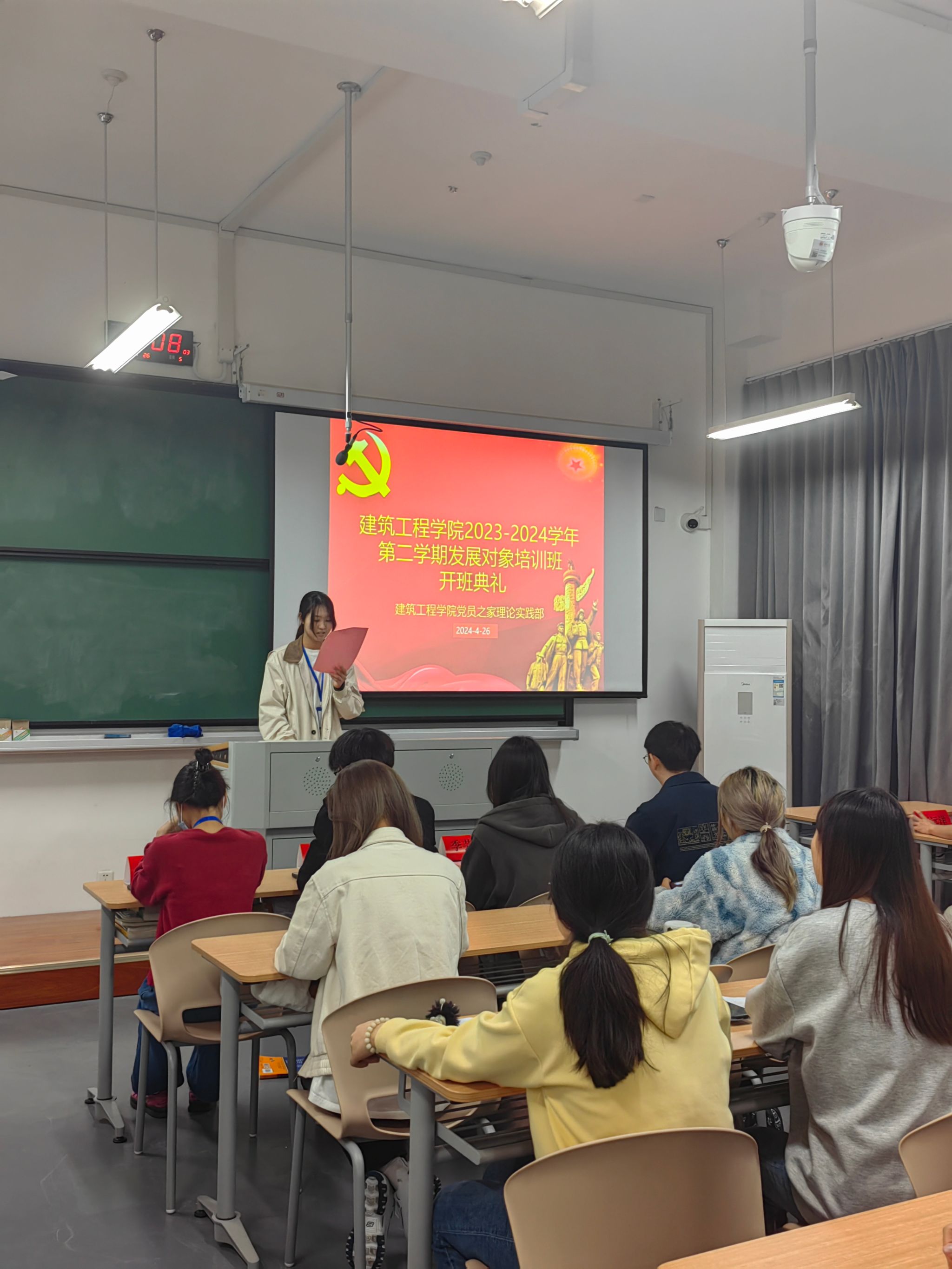 2023-2024学年第二学期发展对象培训班开班典礼在兴德楼北楼210教室顺利举行。班主任俞纪良老师、建工学院党员之家考核发展部部门主任季芸竹,理论实践部部门主任黄雨橙,骆承潼以及草莓视频