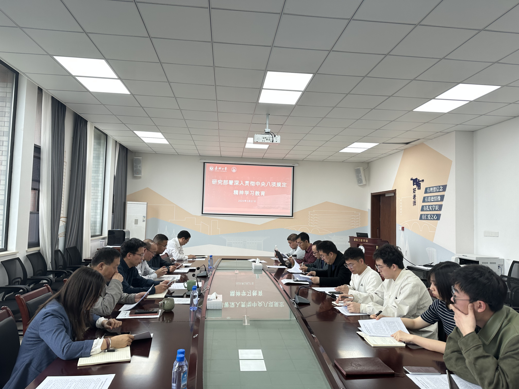 会议指出,开展此次学习教育,是巩固深化习近平新时代中国特色社会主义思想主题教育和党纪学习教育成果、纵深推进全面从严治党的重要举措。全院党员干部要提高政治站位,充分认识学习贯彻中央八项规定精神的重要意义,切实把思想和行动统一到党中央决策部署上来,全面落实学习教育各项工作任务,确保学习教育正确有力、健康有序、取得实效。