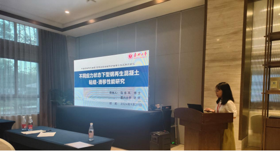 马金凤老师参加了此次会议并在“极端荷载”分会场作了题为“不同应力状态下型钢再生混凝土粘结滑移性能研究”的学术报告,分享了她在钢混凝土组合结构界面黏结滑移方面的研究成果。
