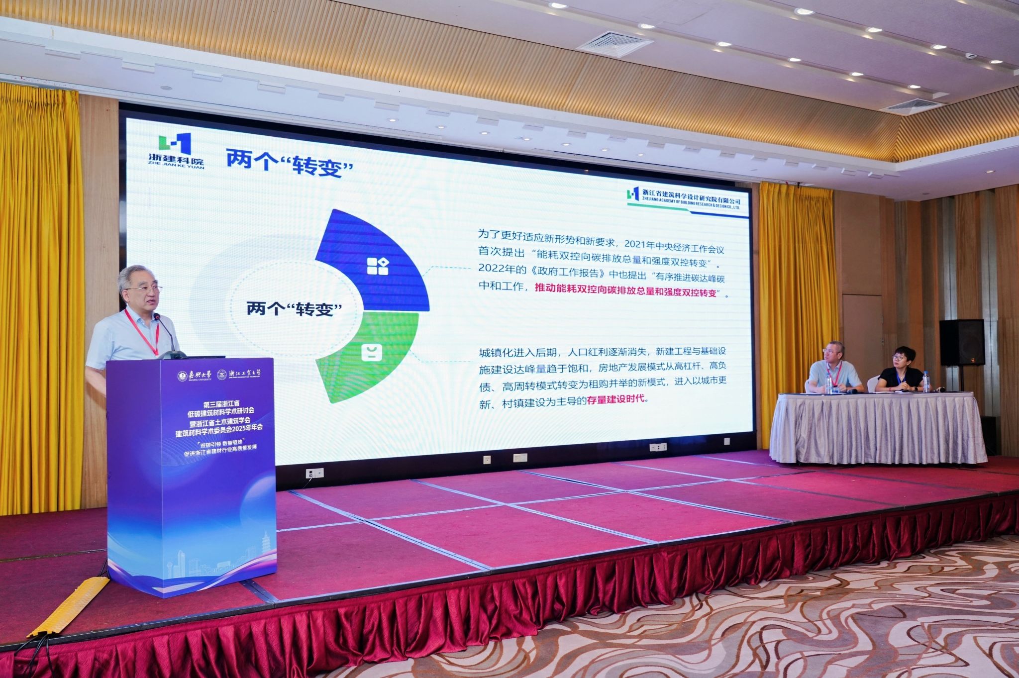 主题报告环节,浙江省建筑科学设计研究院有限公司赵宇宏正高级工程师、中国国检测试控股集团浙江有限公司俞坚正高级工程师、西安建筑科技大学白国良教授、东南大学张亚梅教授、浙江建投智能建造工程有限公司沈西华正高级工程师、浙江大学孟涛教授、同济大学赵增丰教授应邀发表特邀主题报告,省内各高校、相关企业专家学者发表主题演讲,围绕低碳与绿色建筑材料、固废资源化与循环利用、耐久性与长寿命设计、智能建造与数字化技术、功能与高性能材料、城市更新与系统评估等行业热点话题,全面覆盖建筑建材行业向“绿色、低碳、智能、高效”方向转型的核心热点,进行深度探讨和学术交流,给参会嘉宾带来了一场精彩纷呈的学术盛宴。