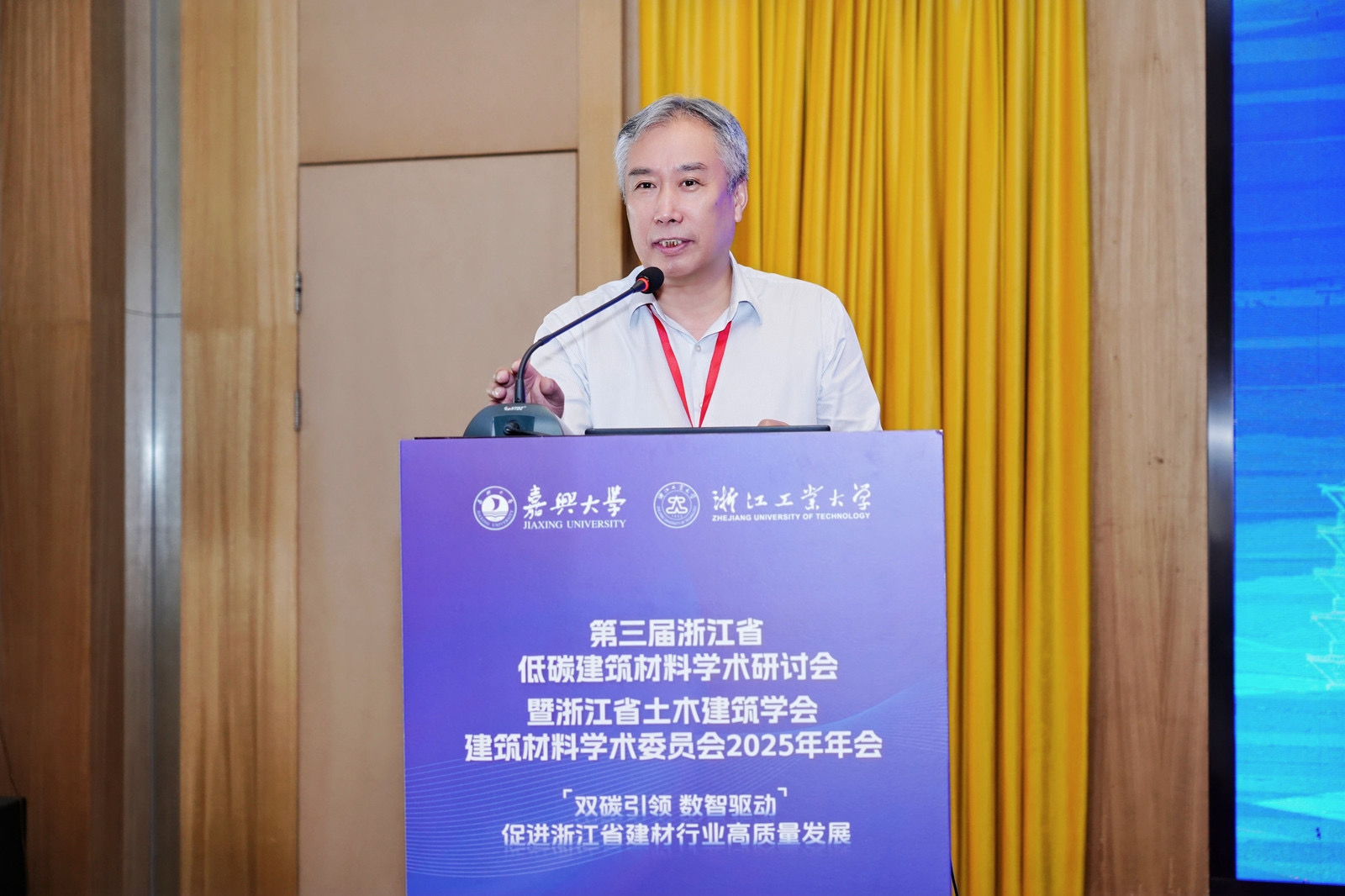 浙江省土木建筑学会建材分会主任杨杨教授为大会开幕式致辞。他指出,建材行业作为支撑城乡建设与发展的基础产业,其绿色化、低碳化转型不仅关乎行业未来,更与国家“双碳”目标紧密相连。本次会议旨在搭建高水平交流平台,聚焦绿色低碳建材的前沿技术、政策标准、工程应用与产业协同,共享创新成果,共商发展路径,共促合作共赢。他提到,本次会议落户草莓视频