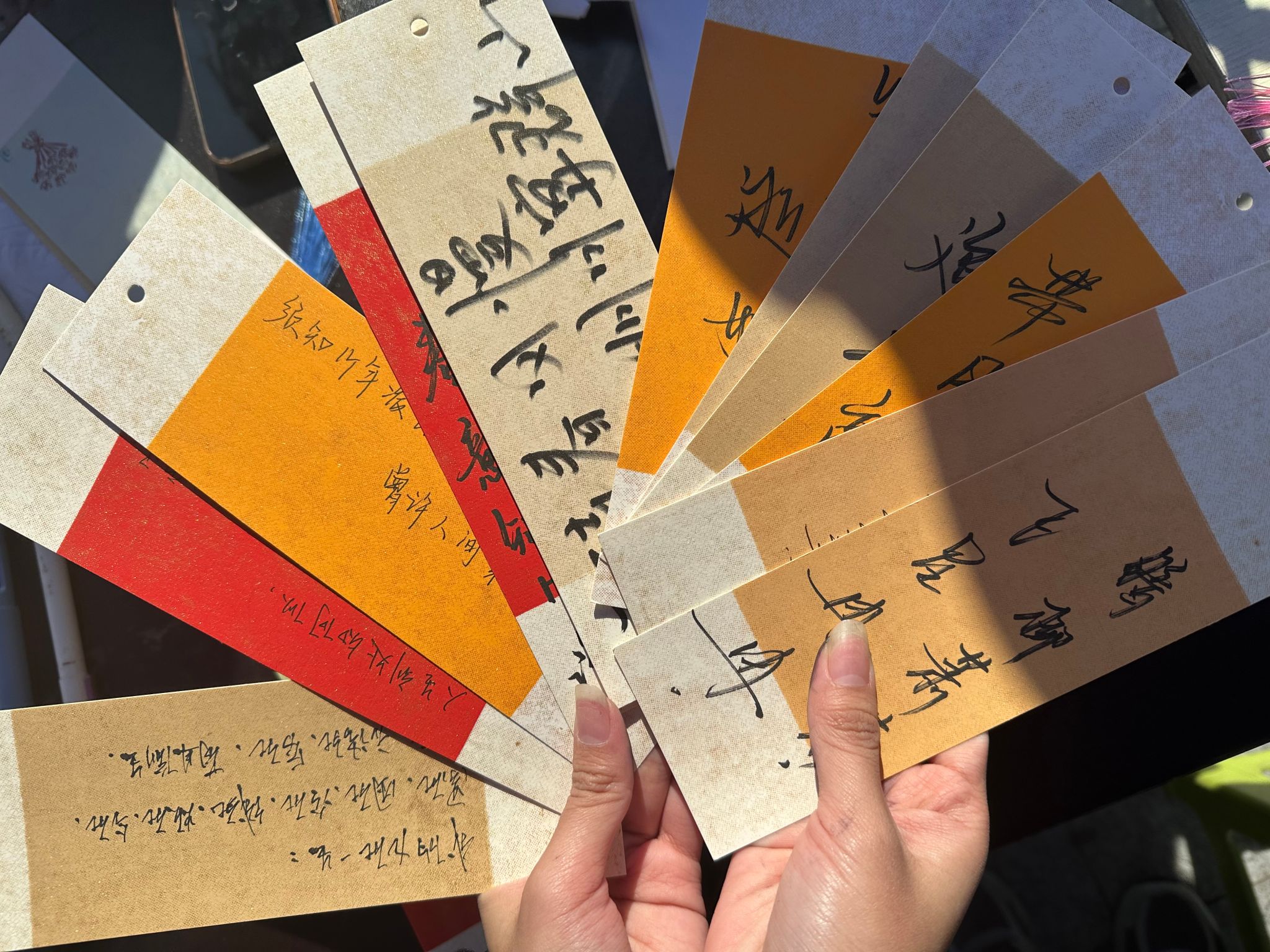 书签DIY制作活动中,吸引了大量学生的踊跃参与。他们运用精致的楷笔在书签上书写个人祝福或简短的文字,勾勒出独特的设计图案,创作出了个性鲜明的书签。在参与者中不乏对书签制作感兴趣的外国留学生,他们融合了中西文化元素,在书签上呈现出独具特色的设计。每一位参与的同学都为书签增添了独特的魅力,他们以巧手绘制,呈现出一张张充满寓意、构思独到、造型迥异的个性书签。