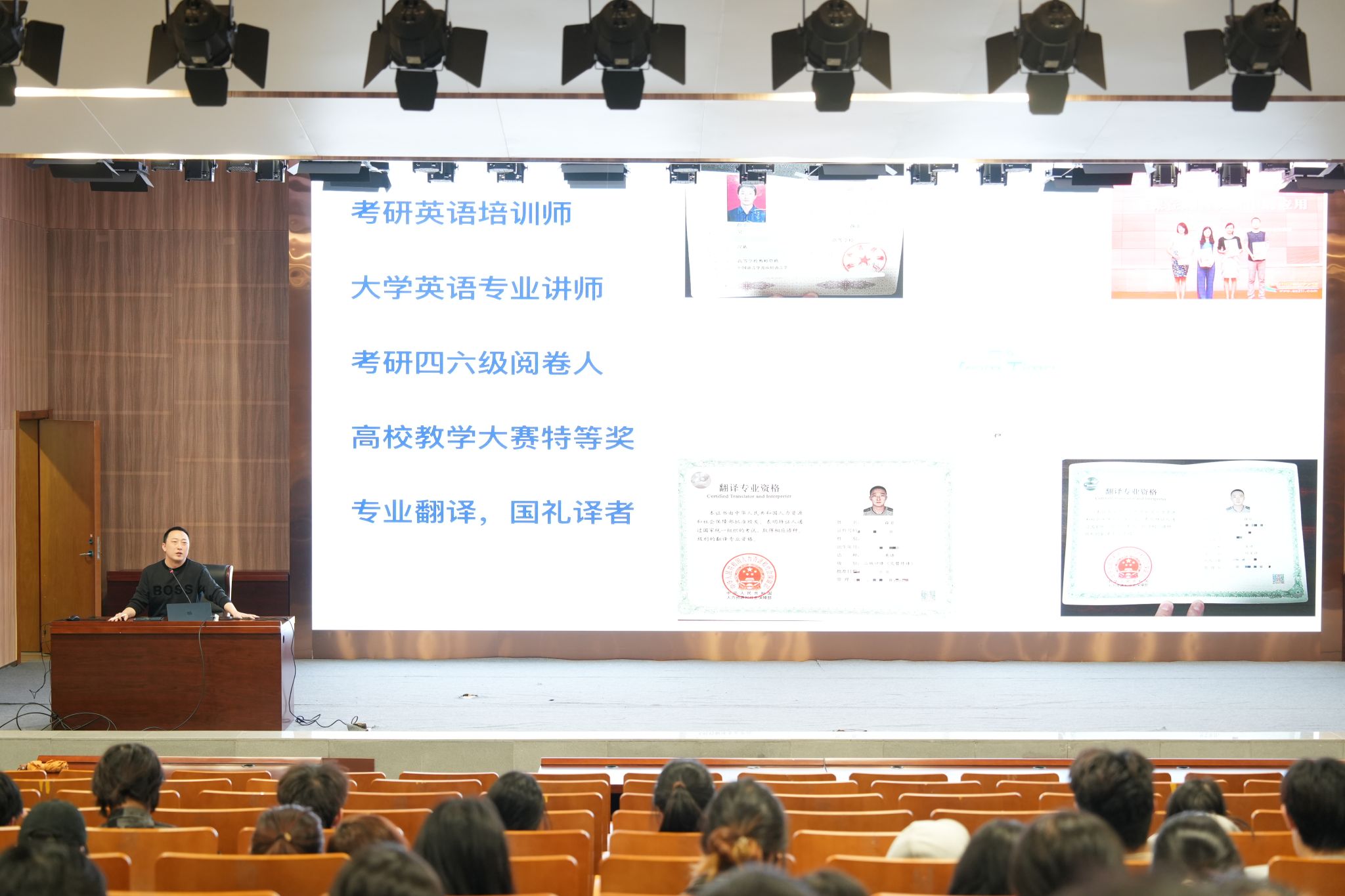 在图书馆一楼学术报告厅举办“奋斗青春,逐梦前行”考研指导会。就业辅导员庄峰、启航考研讲师薛非及2022级学生参加会议。