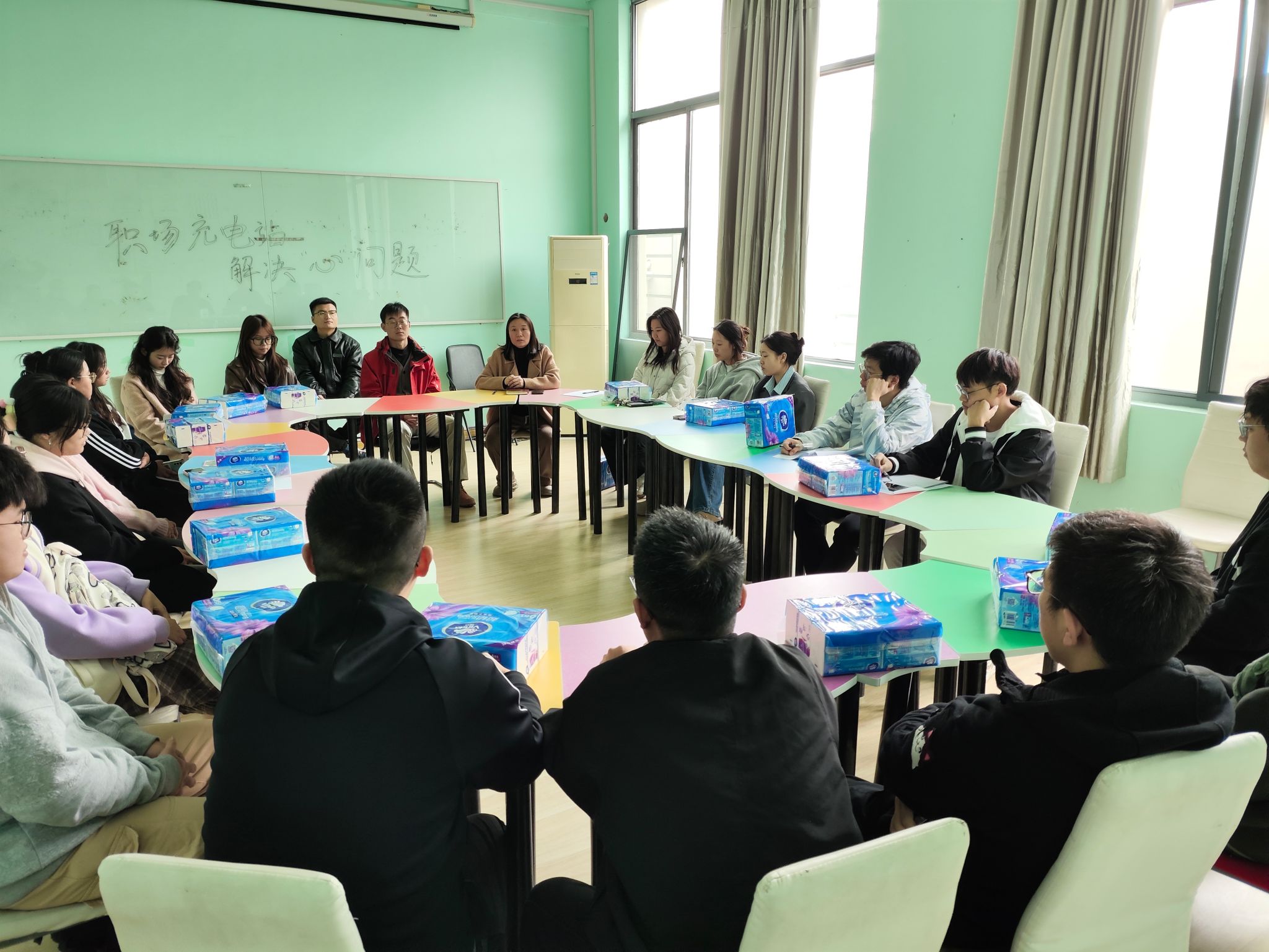 心理健康中心305成功举办了“职场充电站,解决‘心’问题”心理团辅活动。活动学工办主任刘静老师主持,就业辅导员庄峰及毕业生代表参加。特邀草莓视频