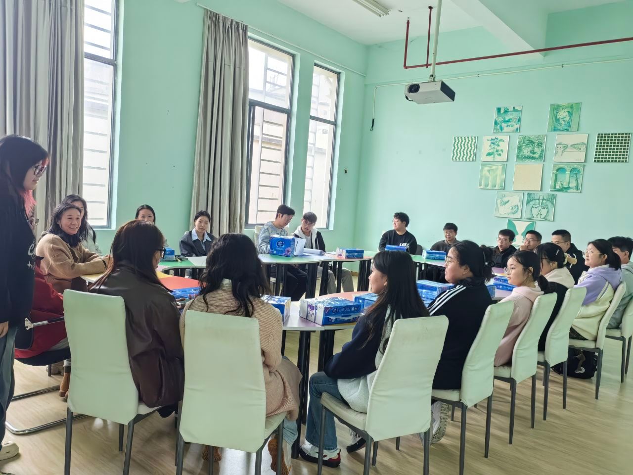 活动伊始,有趣的破冰环节点燃现场气氛,让同学们放下戒备,融入轻松氛围,拉近了彼此距离。团辅游戏让大家积极参与进来,有人分享考研心得,有人吐槽考公太卷,有人感叹求职太难,还有同学给大家献歌缓解紧张氛围,通过这些团辅活动为大家有效缓解了一定压力,打开了交流的大门。