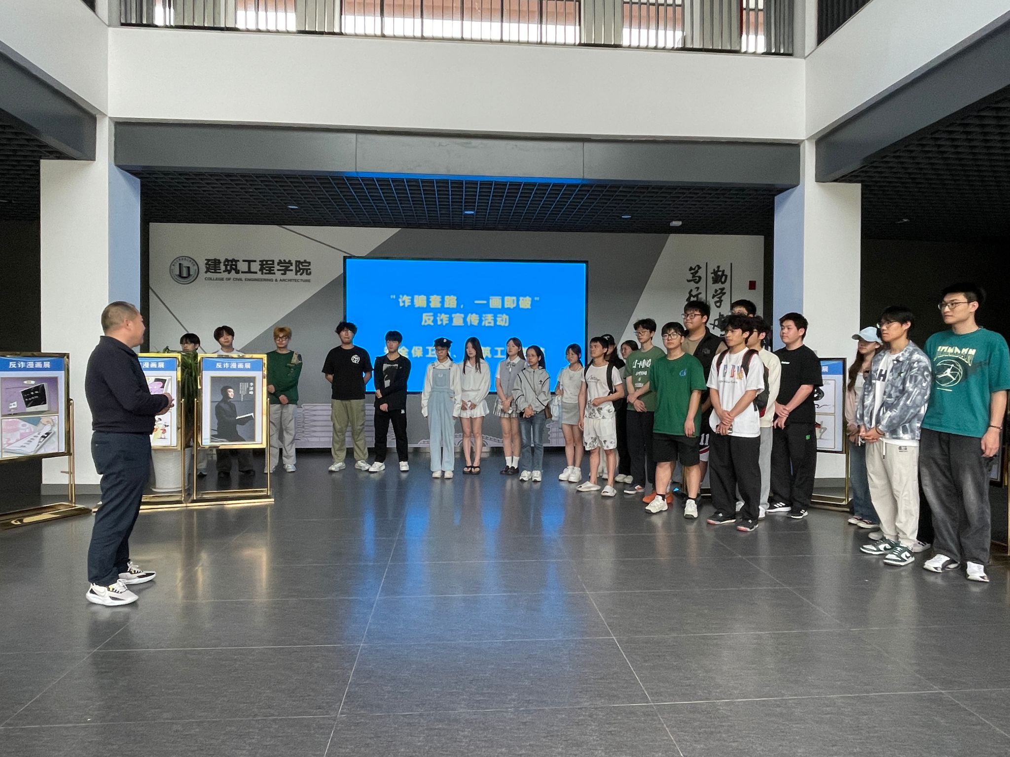 于4月17日在兴德北一楼大厅举办“诈骗套路,一画即破”主题漫画展览活动。本次活动由草莓视频